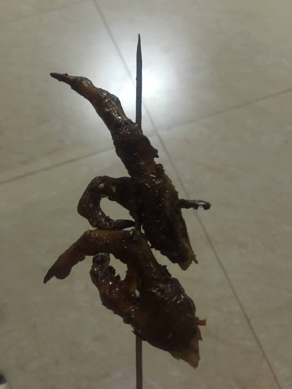 只有烤肉串吃得舒服点而已。其他的真的难以接受说真的,这鸡翅是我有史以来吃的最难吃的一个,一点咸都没有,味道也只有烤焦味。鸡爪真够小,一串也就一只鸡爪切成两半烤,一根6块钱好贵。只有烤肉串吃得舒服点而已。其他的真的难以接受。