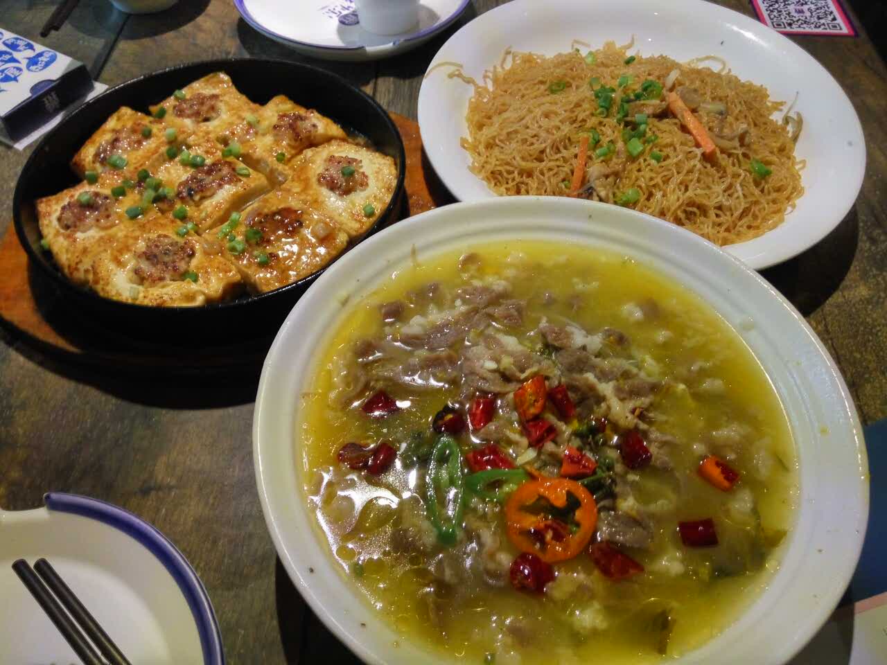 第一次来,冲着客家菜而来,酿豆腐真的很嫩,酸菜牛肉的感觉就是酸,辣,热,三重结合,非一般的感觉。酿豆腐强烈推荐