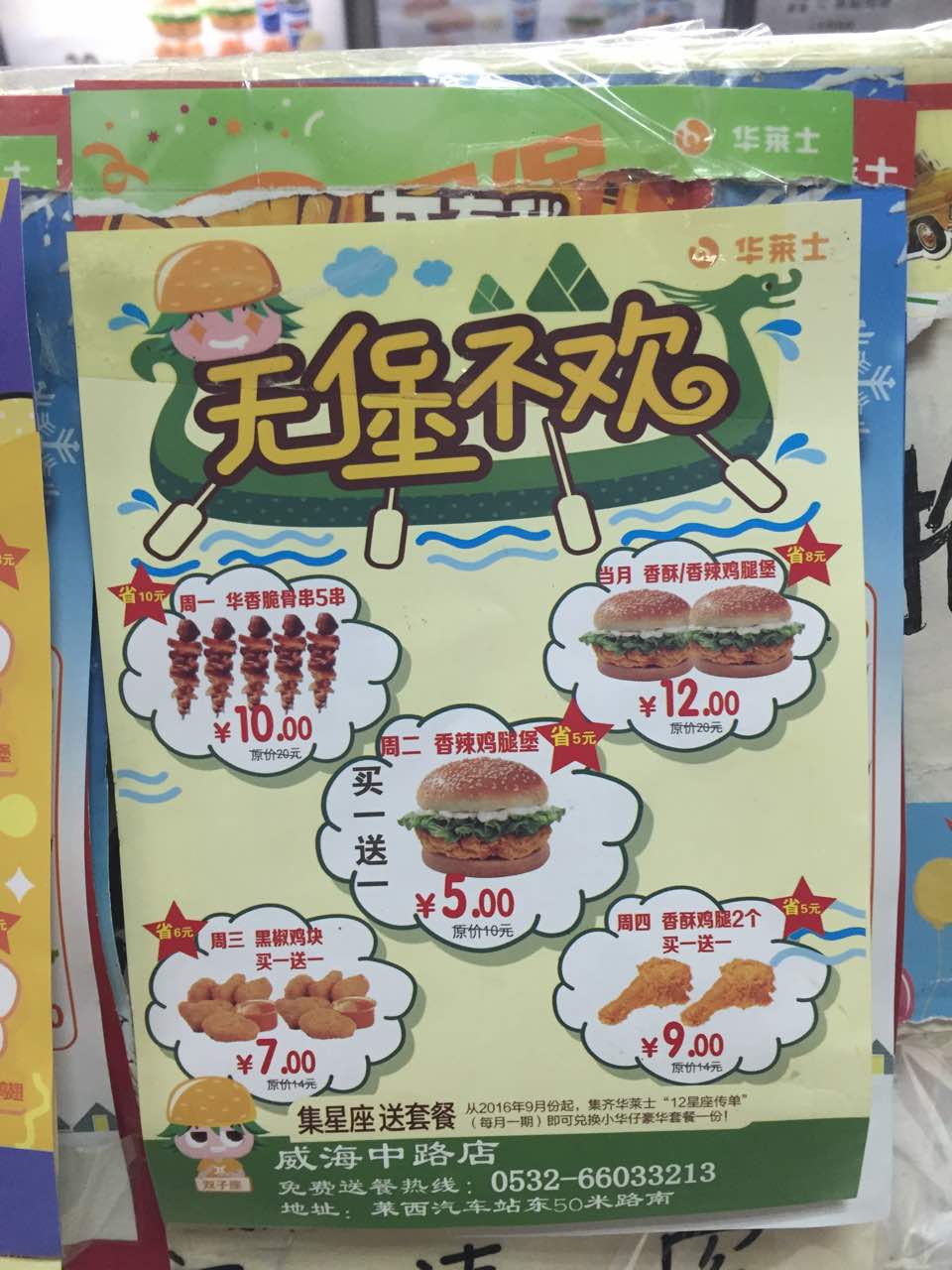 查看更多华莱士·全鸡汉堡(威海中路店)点评 >
