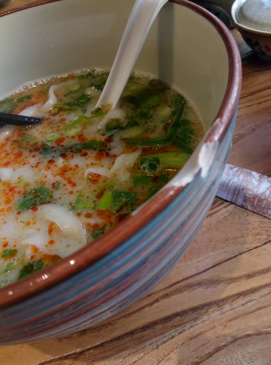首先环境要的,空间宽广,整个都是木质桌椅,堂皇大气!不像有些快餐店空间紧凑,给人压抑的感觉!其次食物味道也是可以的,刚开始只点了一个羊肉刀削面,这个刀削面好吃,没搅拌之前,太淡了,当时我觉得没味,也没想到底料都在碗底,所以我就加了三勺辣椒,搅拌了一会儿,喝了下汤才发现原来内有乾坤,不咸不淡加上我加的辣椒,再次,羊肉处理的比较好,膻味基本去掉了,不特意去闻真的闻不出来那羊膻味,再加辣椒掩盖那膻味,所以膻味就没得了(至少鼻子问不出来)人间美味!说了优点我们说说缺点,首先各位应该看到了照片里的碗碟破损比较厉害,成人没看到都会划破嘴,更不用说小孩子了!其次和其他大不餐馆一样小气,这是和北方(包括西北东北)分量够不上西北人的豪爽,到像南方那样餐馆秀气(当然比南方餐馆还是要多的),再次说好的羊肉刀削面,我只看到了三片羊肉!