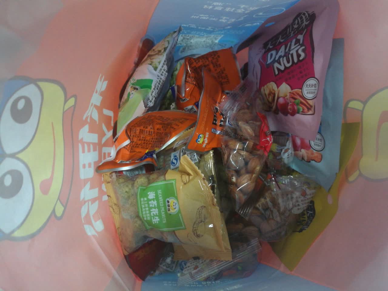 买了鸭胗鸭舌海苔花生杏仁,还有小包装的坚果,感觉不错