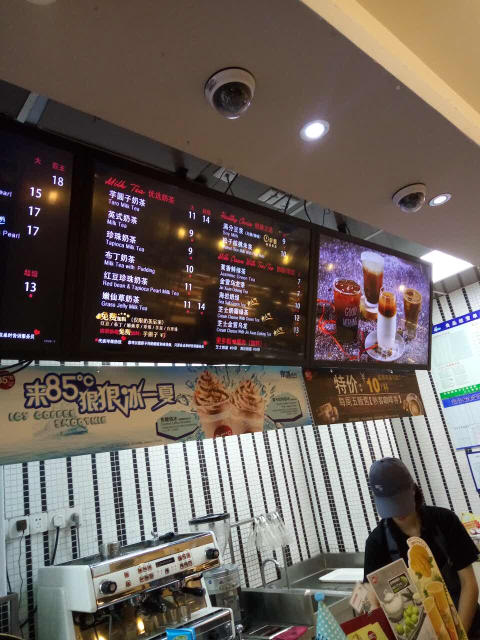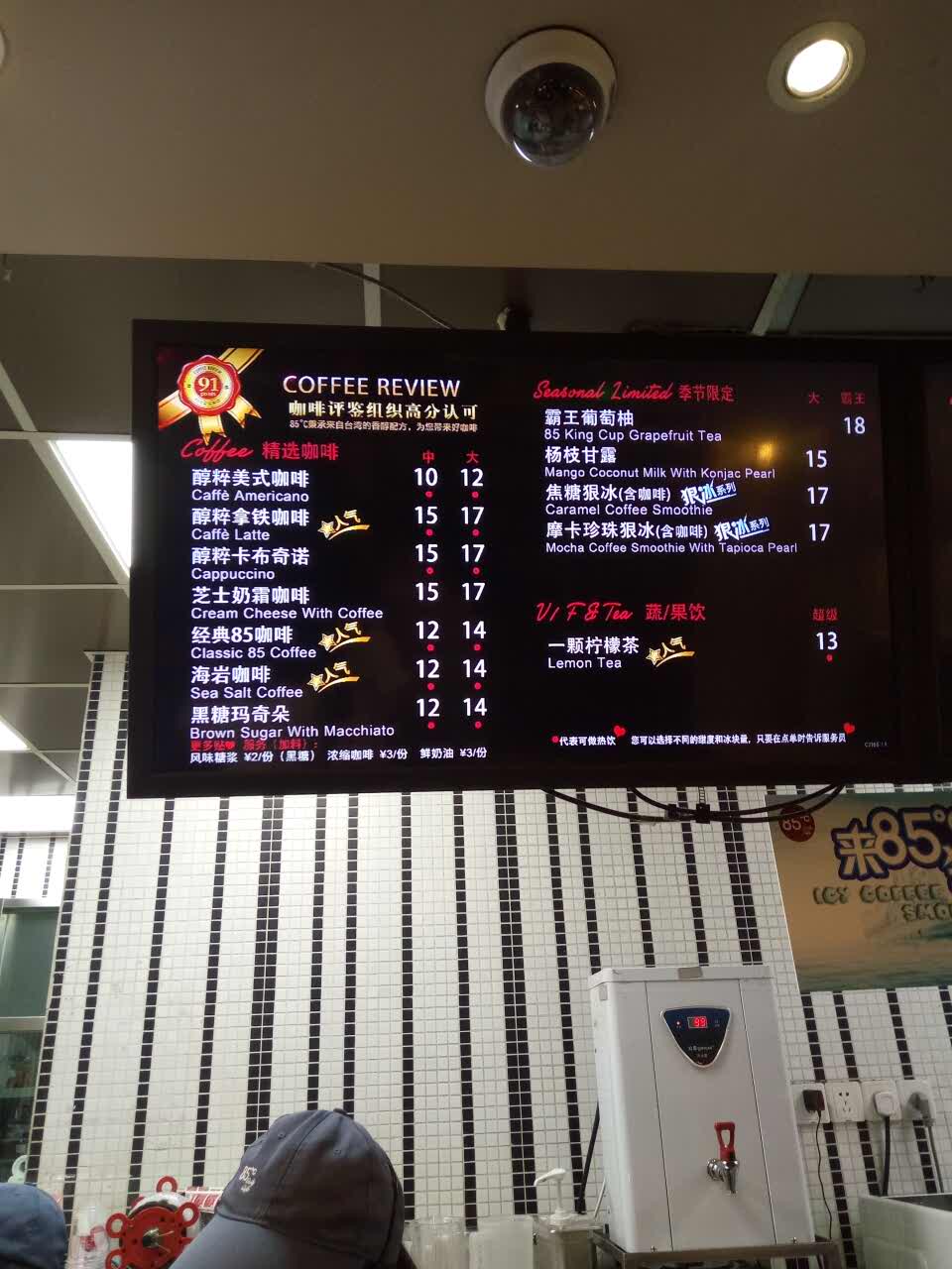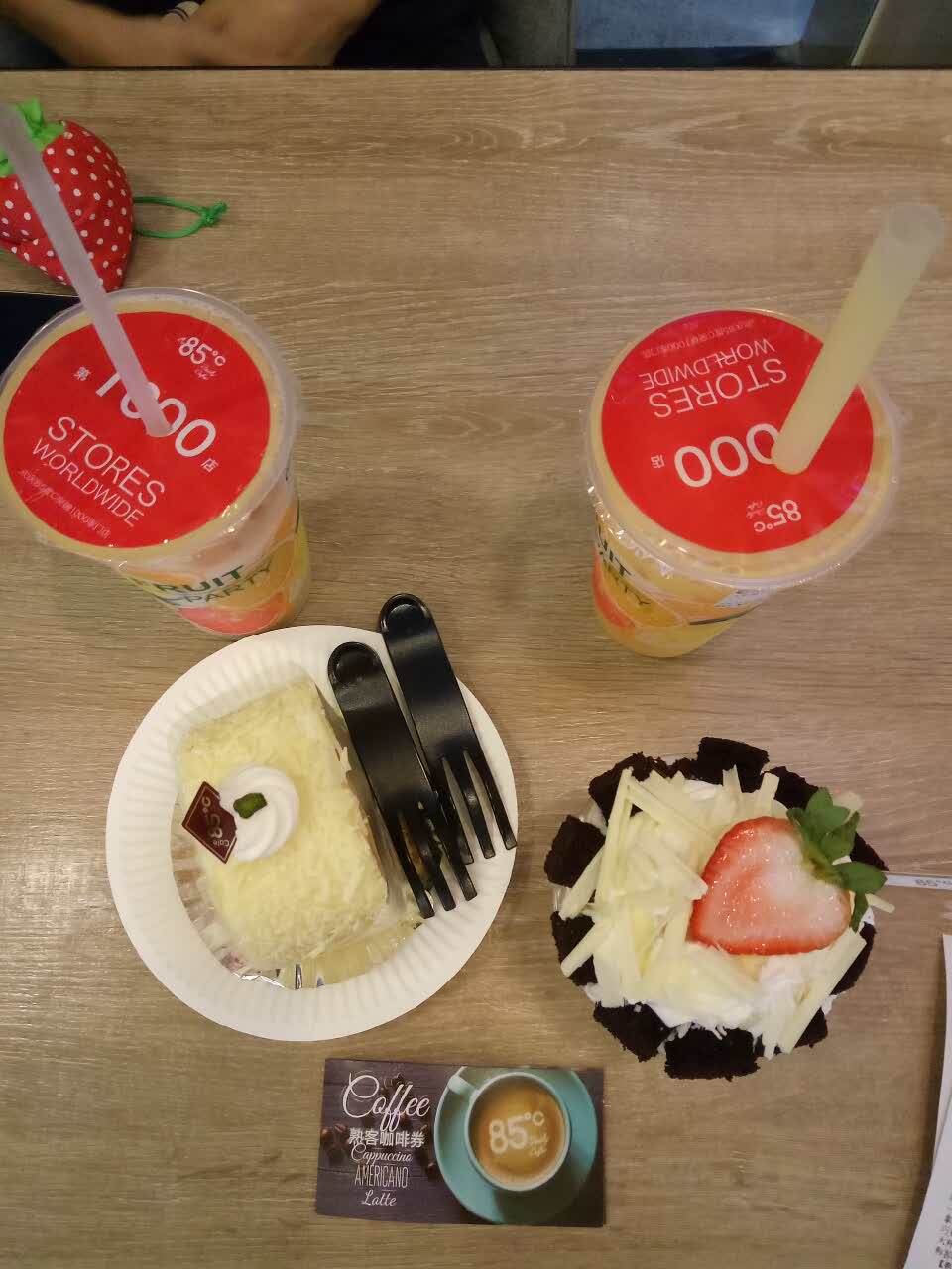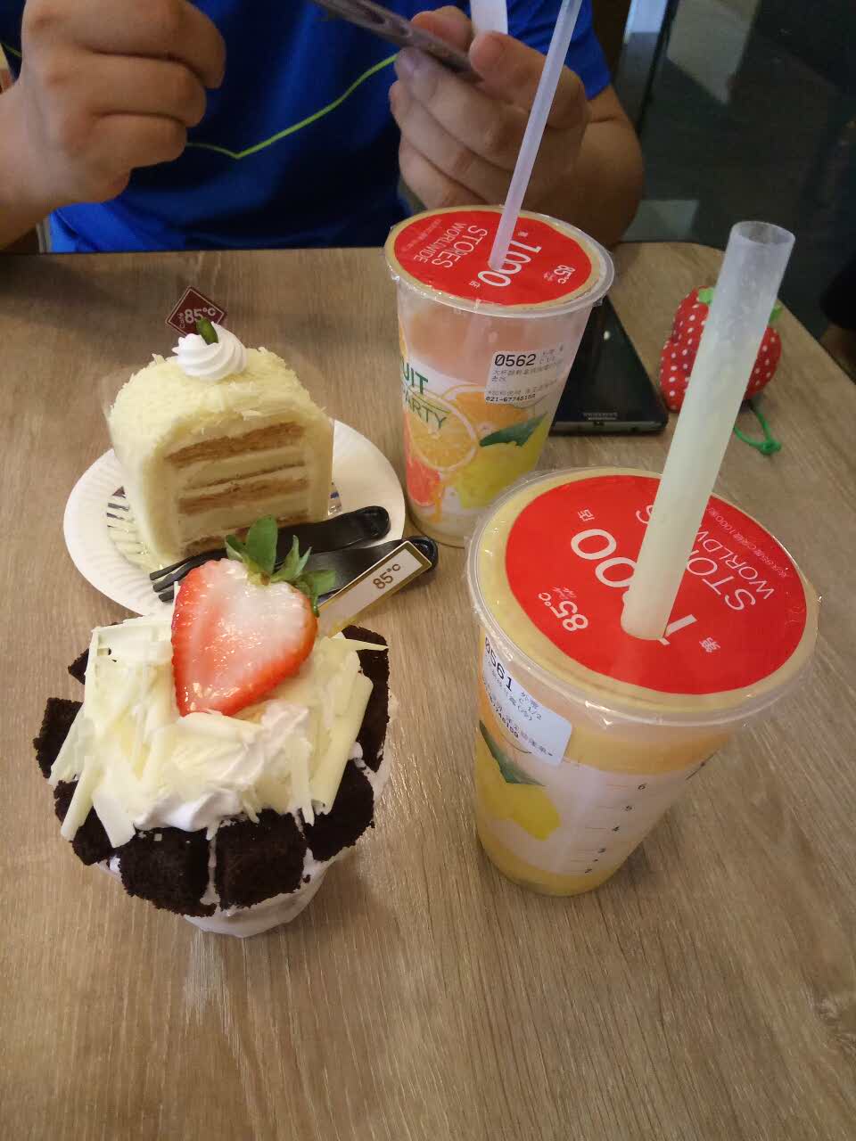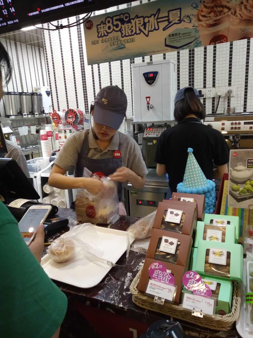 九亭镇上好像没有甜品店,去了85度C,老公说要喝咖啡,店员服务特好,大杯咖啡17元一杯,推荐我买了100元优惠券,总共10张优惠券。那里人特多,一波又一波,生意特好,唯一的缺点就是堂内是布艺沙发,太脏了,儿子都不要坐!