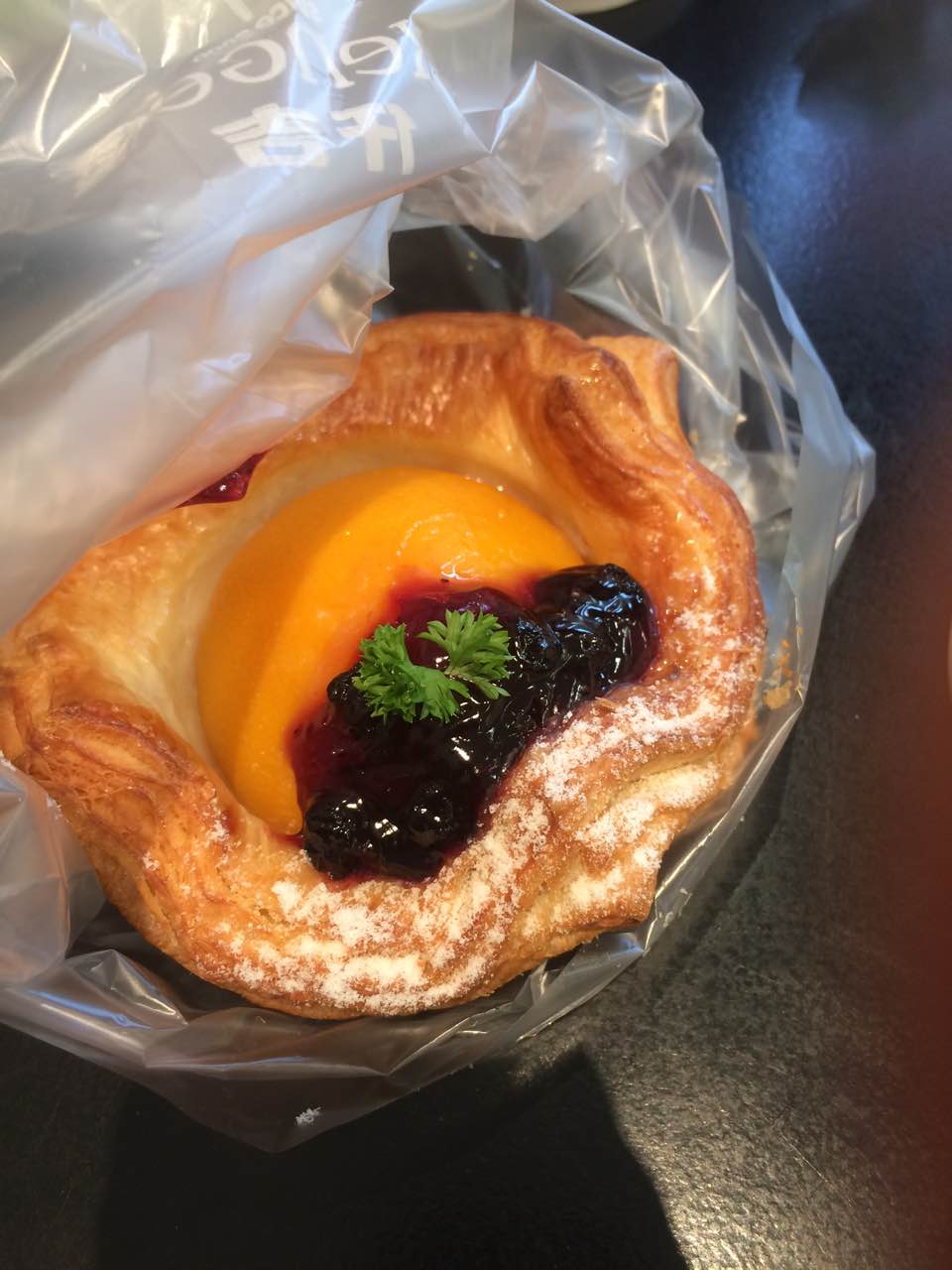 一个丹麦黄桃,一个甜甜圈,味道很不错,推荐哦!