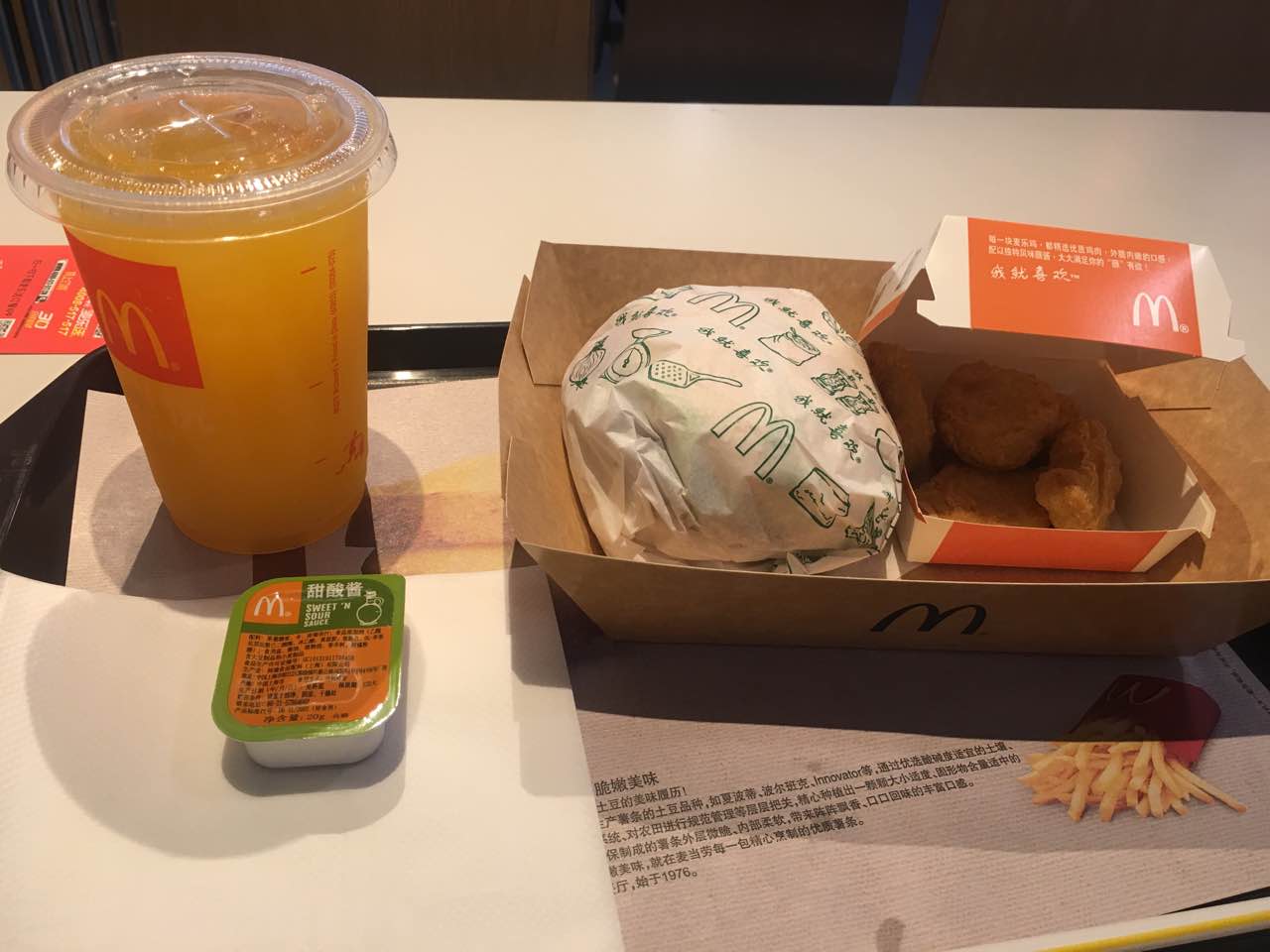 中午逛街很久没吃M啦,店员的服务好,态度好,食物的口味也很赞