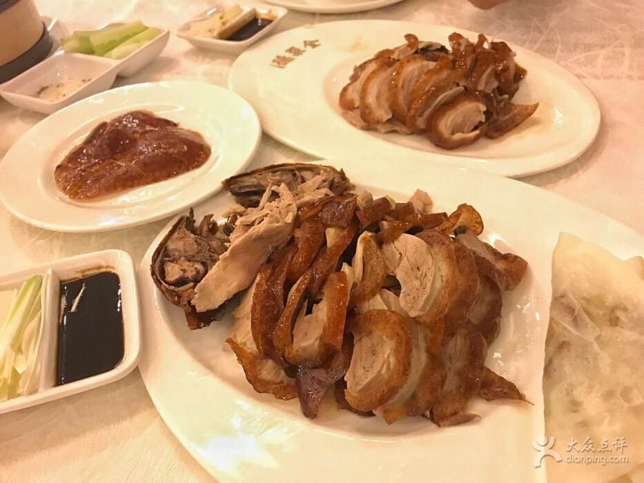 ...,点了一只烤鸭又推荐两个特色,还做了椒盐鸭架,不过烤鸭吃多了有点腻,配上配料还可以,下次还会来上午去的,人不多,上菜速度也蛮快的,服务员也挺热情,点了一只烤鸭又推荐两个特色,还做了椒盐鸭架,不过烤鸭吃多了有点腻,配上配料还可以,下次还会来