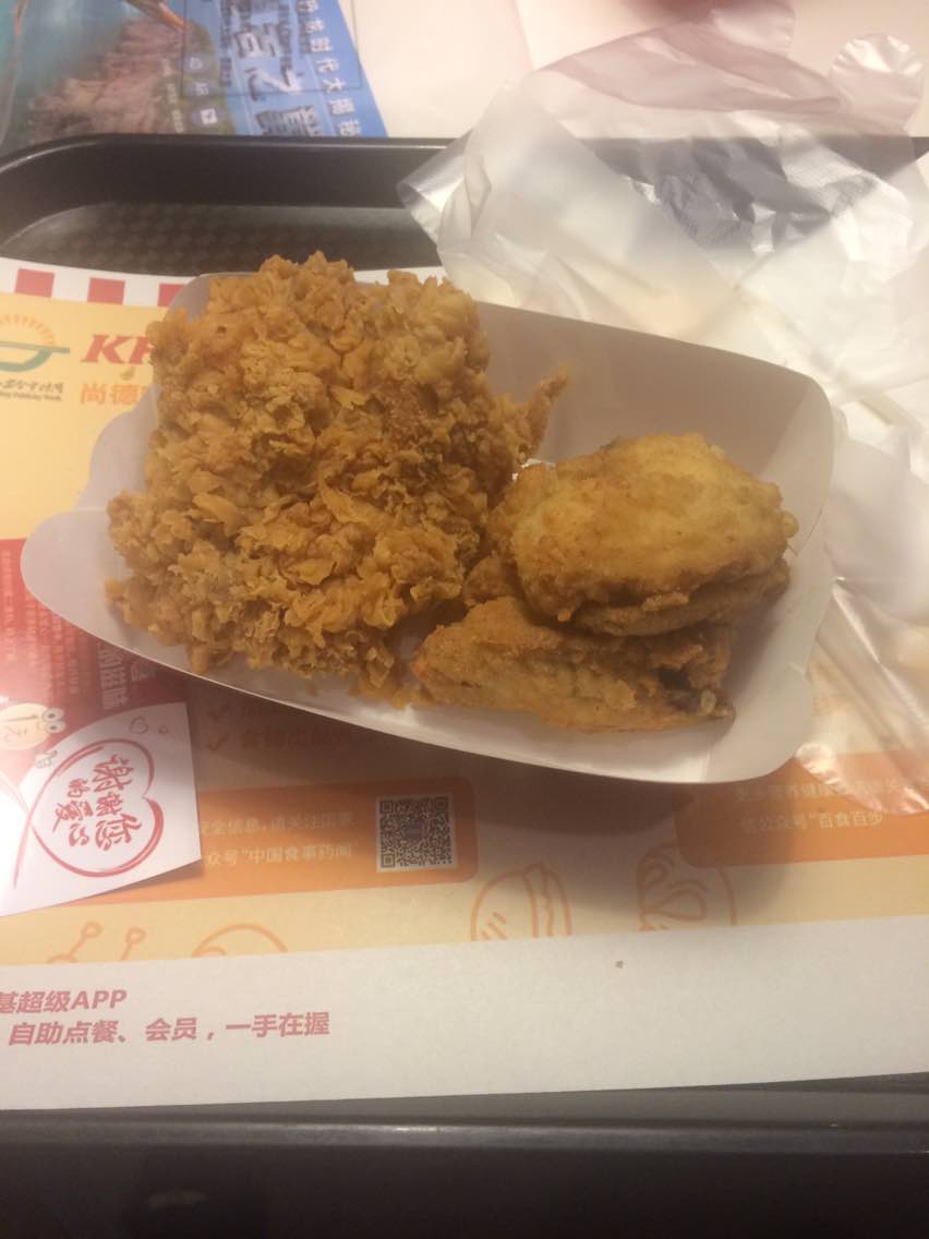 18块倆块炸鸡,刚出炉美味,一个人只要倆块就好了。5块装还是和基友来吧。