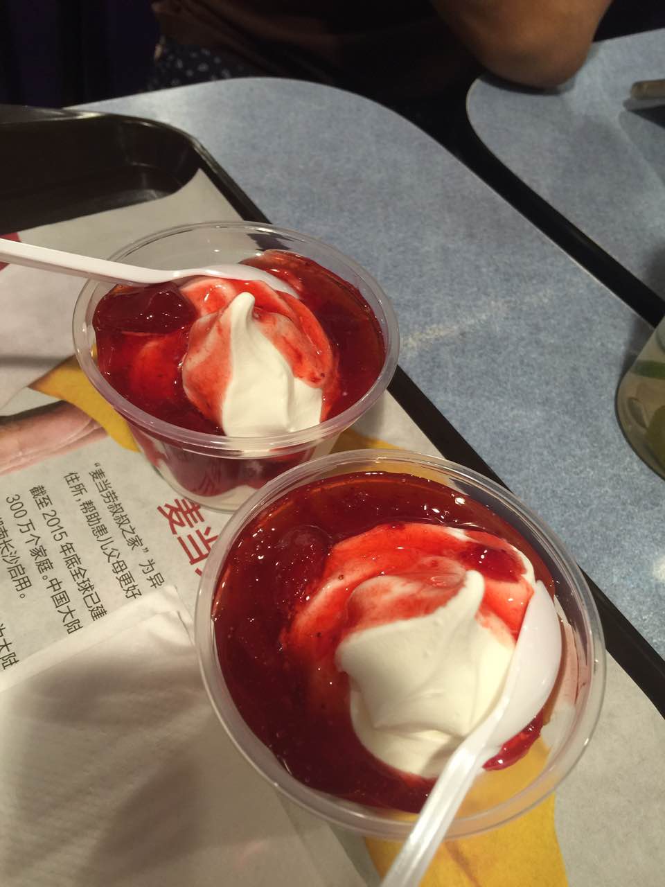 孩子非常非常喜欢麦当劳的冰激凌,哈哈,太喜欢了,呵呵!