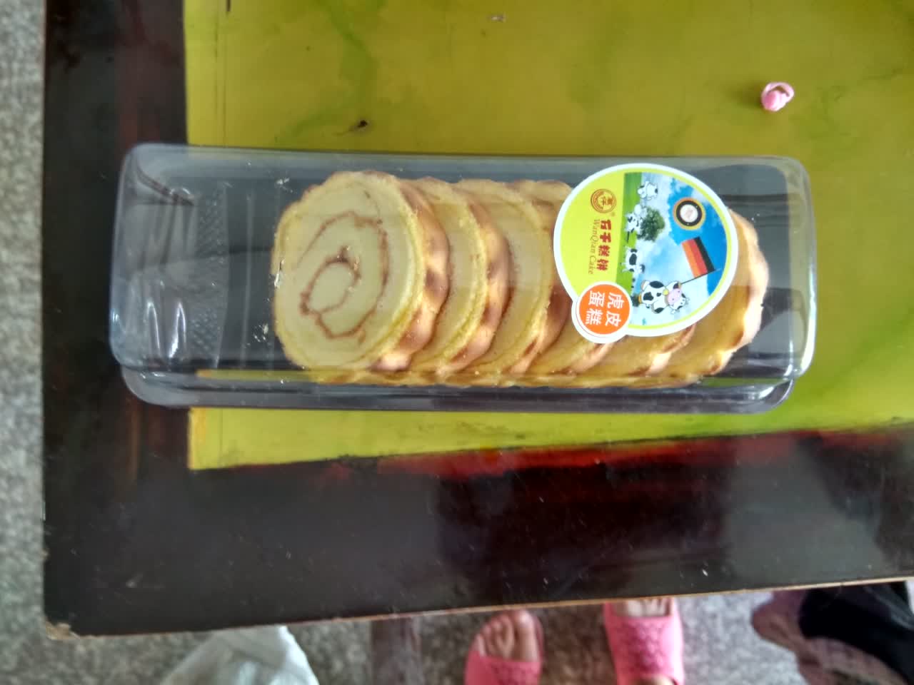 女儿很喜欢他们家的巧克力虎皮蛋糕,可惜昨天没有!就给她买了奶油的!
