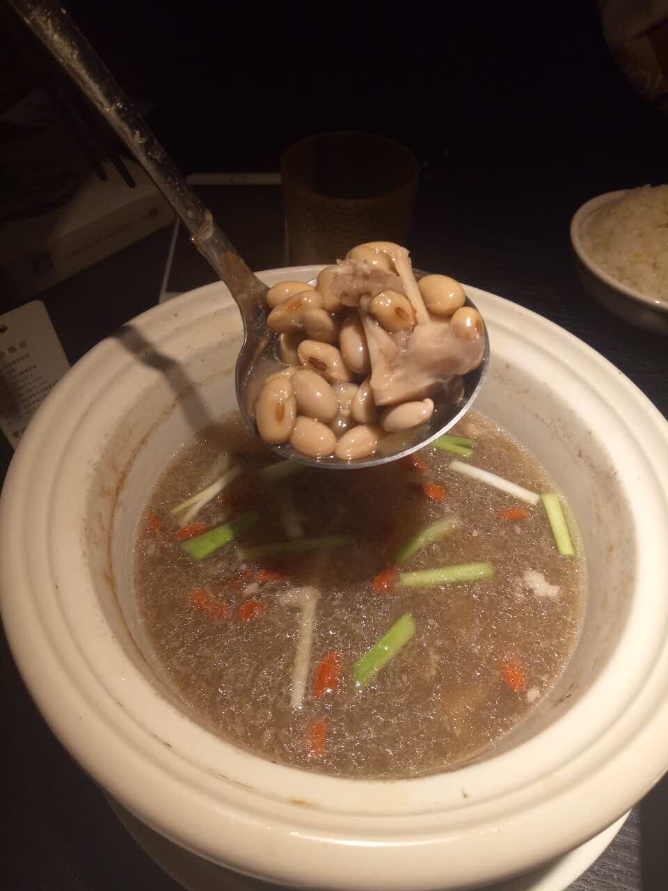 都炖不知道多长时间了,黄豆和猪手都失去了口感了。而且里面基本上都是骨头。