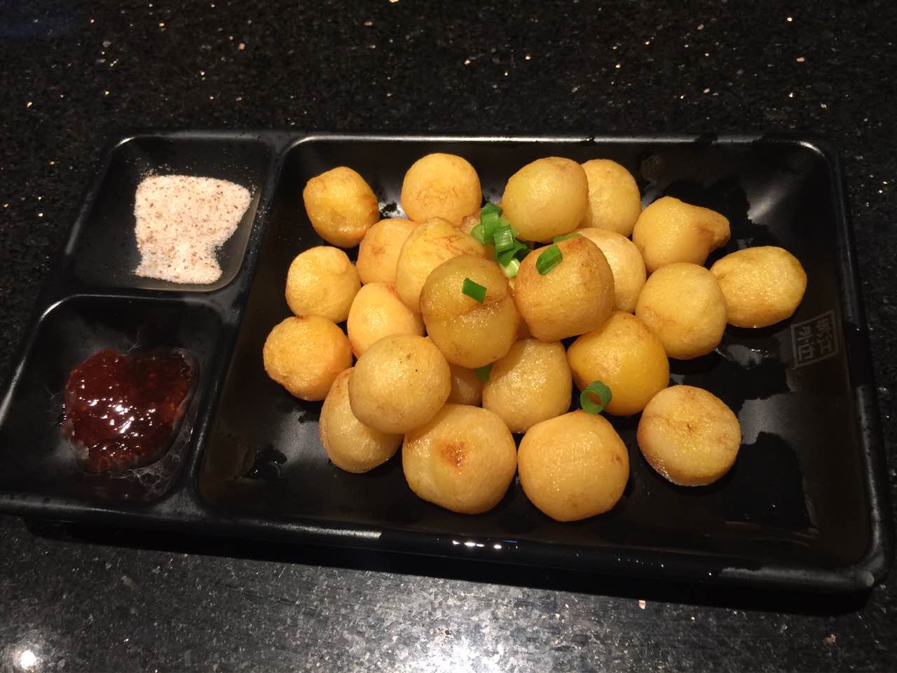 这次点的怪味烤鱼和北碚豆腐烤鱼,怪味烤鱼有点甜,吃到一半就有点腻了,北碚豆腐烤鱼豆腐很嫩,味道也不错,蛋煎糍粑口感很细腻,上面撒的应该是豆粉,感觉不像用蒸好的糯米饭打出来的,有点像糯米粉蒸熟后做的,小土豆外焦里嫩,配两种蘸料,一个是甜的一个是盐加其他干料调的,应该是用工具从大土豆上面一个一个挖下来的,挺好吃。