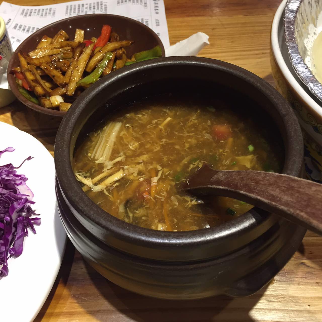 服务差评:碗碟好脏,一看就是用完后根本没洗就拿上来用了,还好我发现了,让服务员换态度很差劲。虽然年纪都很大,也不能给好评!口味差评:春饼不新鲜,口感硬、没有饼香味;其他菜品偏油腻、过甜!黑胡椒杏鲍菇都是甜的,难以理解。酸辣汤还可以。环境好评:地方很小,但布局挺合理,算不错。