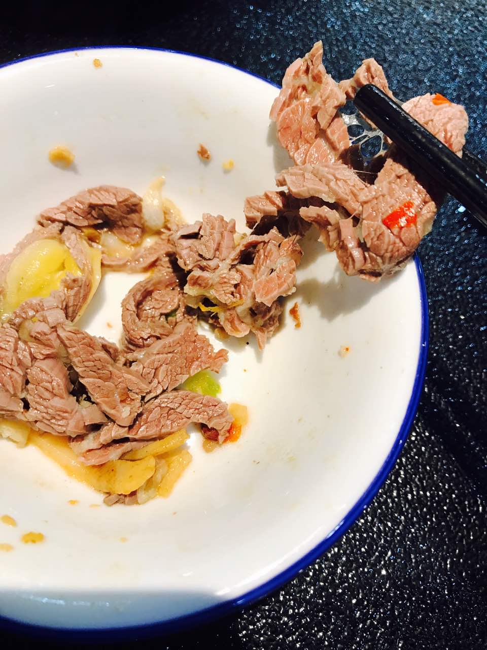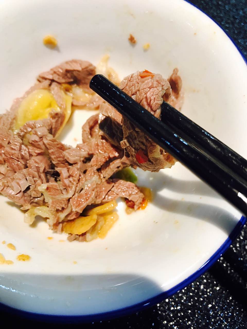今天吃的牛肉不太好,有点材…