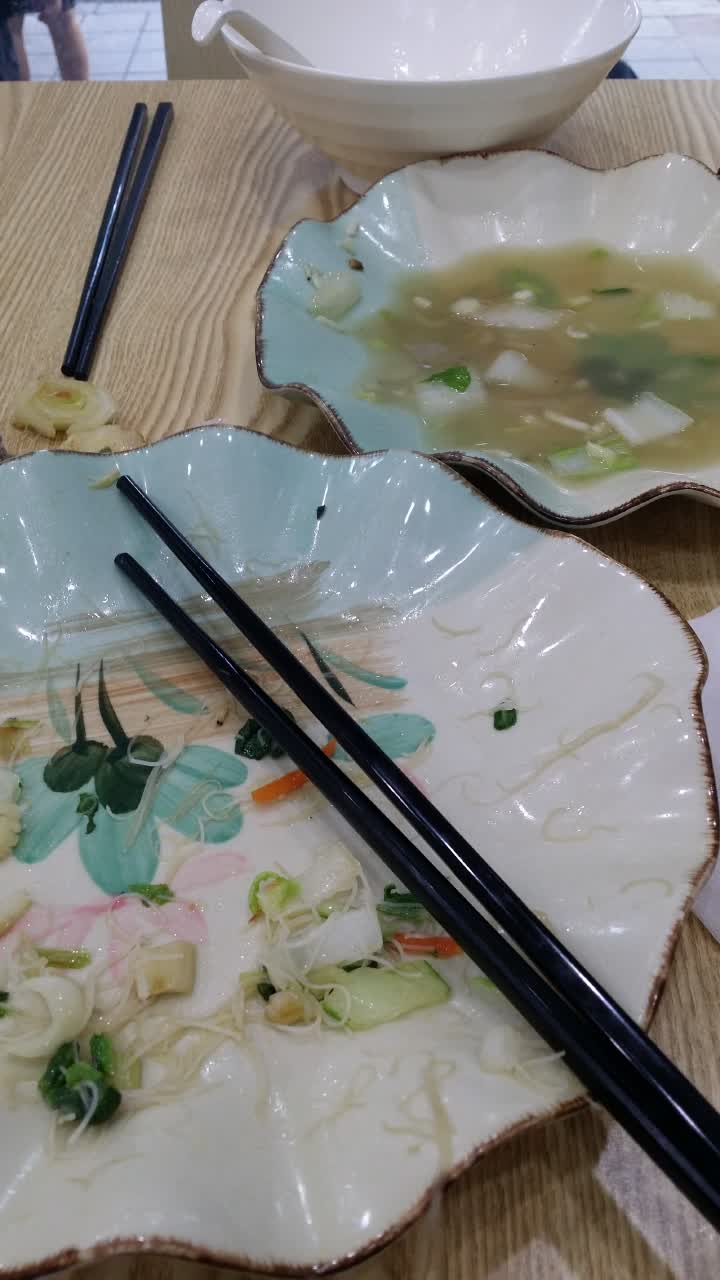 第一次把炒米粉一大盘全消灭光,撑啊!另外炒白菜里加了小虾米,味道很虎纠,稀饭。哈哈哈