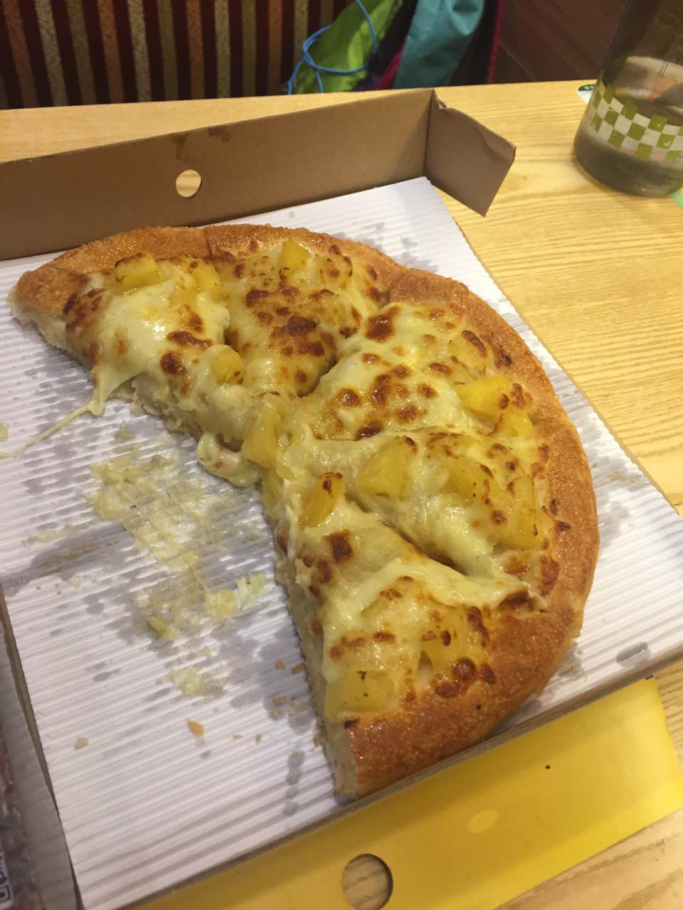 经常在这里吃,味道不错,尤其榴莲披萨和至尊披萨,尊宝秘制香翅翼是孩子们的最爱。外卖也不错