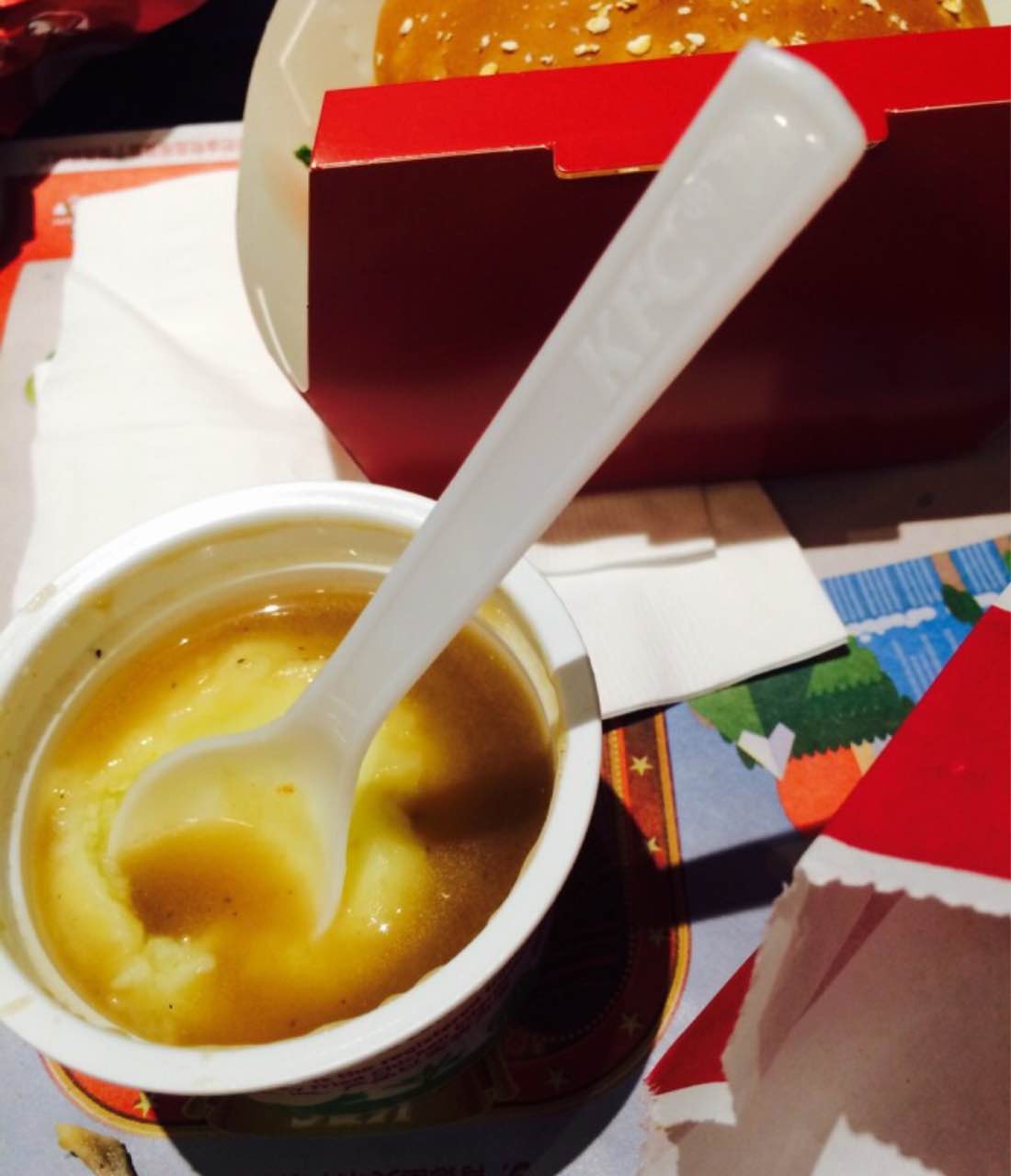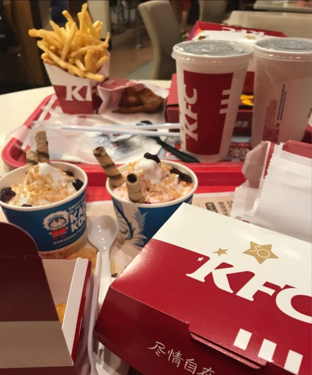 炎炎夏日去朋友家玩,路过kfc就进去了,想了一下果真好久没吃过了,记得小时候说,薯条蘸土豆泥最好吃了!吃到现在还是小时候的味道贼好吃!