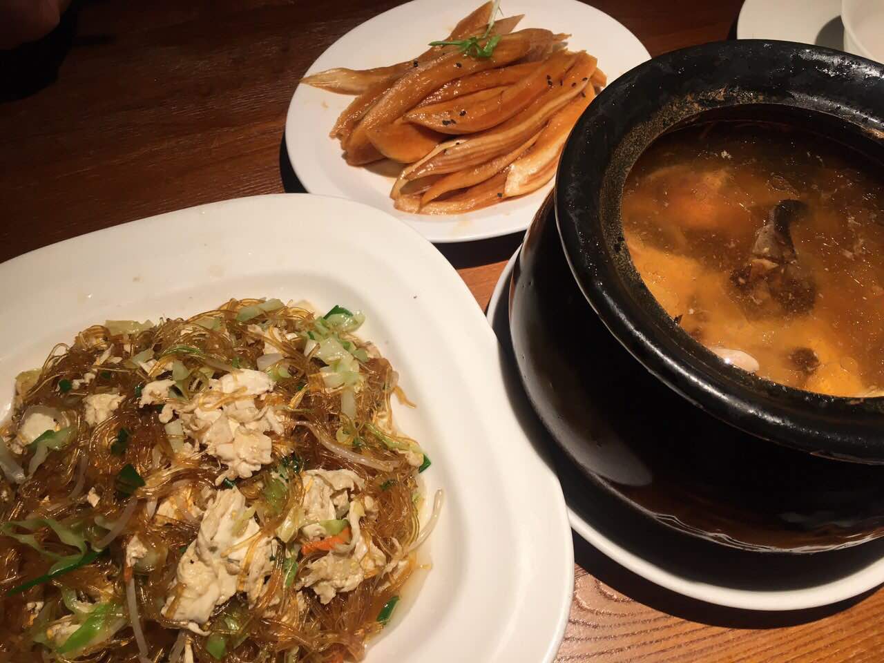 真真不错比起外婆桥来不知道要好多少了,爸妈也这么认为,每到菜都很好吃,腌萝卜甜中带酸,菌菇汤很值得推荐 超多肉的,粉色好吃的也便宜才10来块,烤肉味道也不错,酱汁很美味的,葱油鲈鱼超级好吃,对于我这种不爱吃鱼的人来说都深深吸引了,酱鸭28一盆满满的一盆啊真的是太划算了,服务员态度也很好,帮你撤空盘子还问你要不要倒水,而且点菜方式很独特,自己扫支付宝点餐,方便快捷,一提交就把菜单纸送来了,上菜速度也很快,等了没几分钟喝了俩口水,刷的好几样菜上来了,对了一到zuo