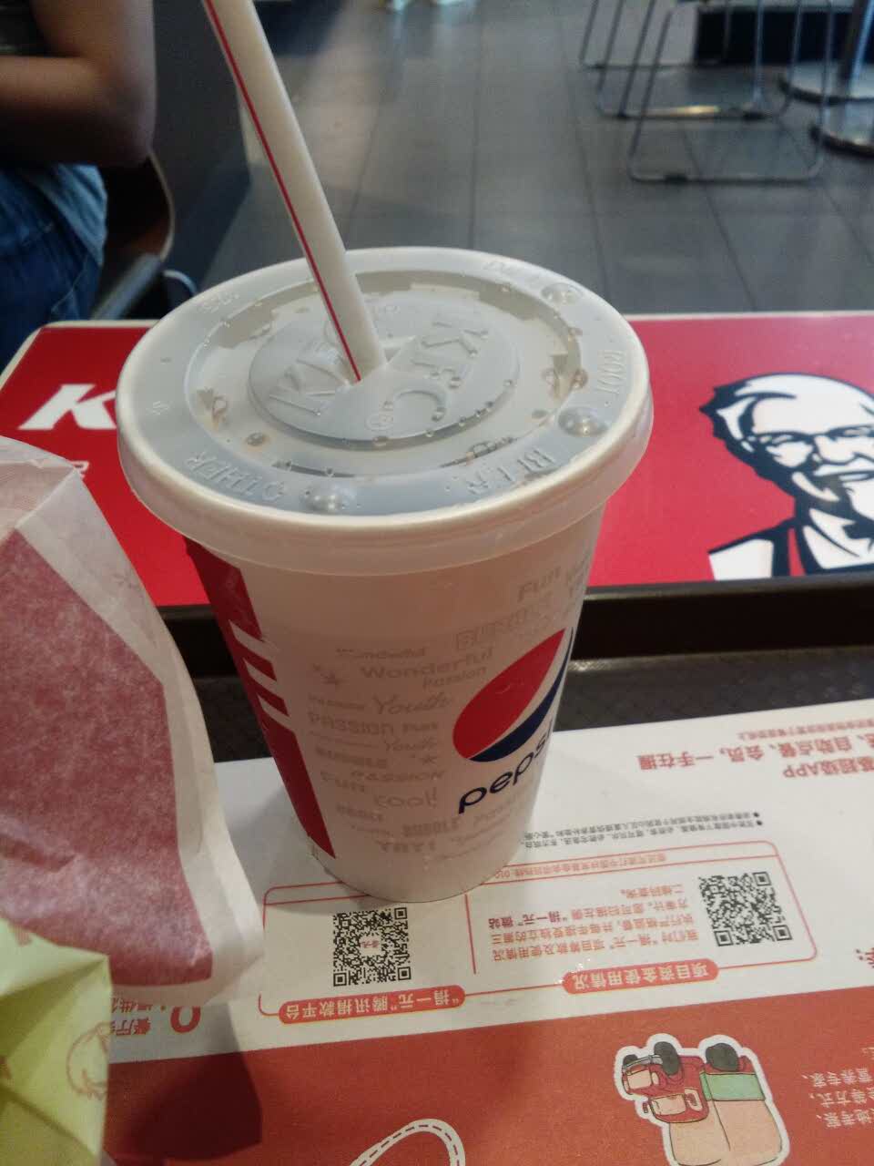 小杯可乐在夏天喝一杯还是可以的 爽爽的 外加一个鸡肉卷 味道还行 没餐巾纸 ……