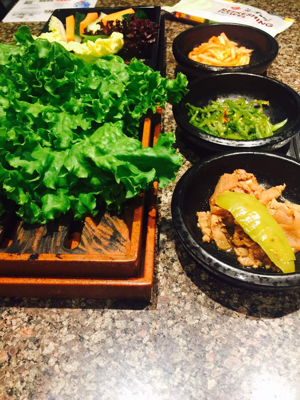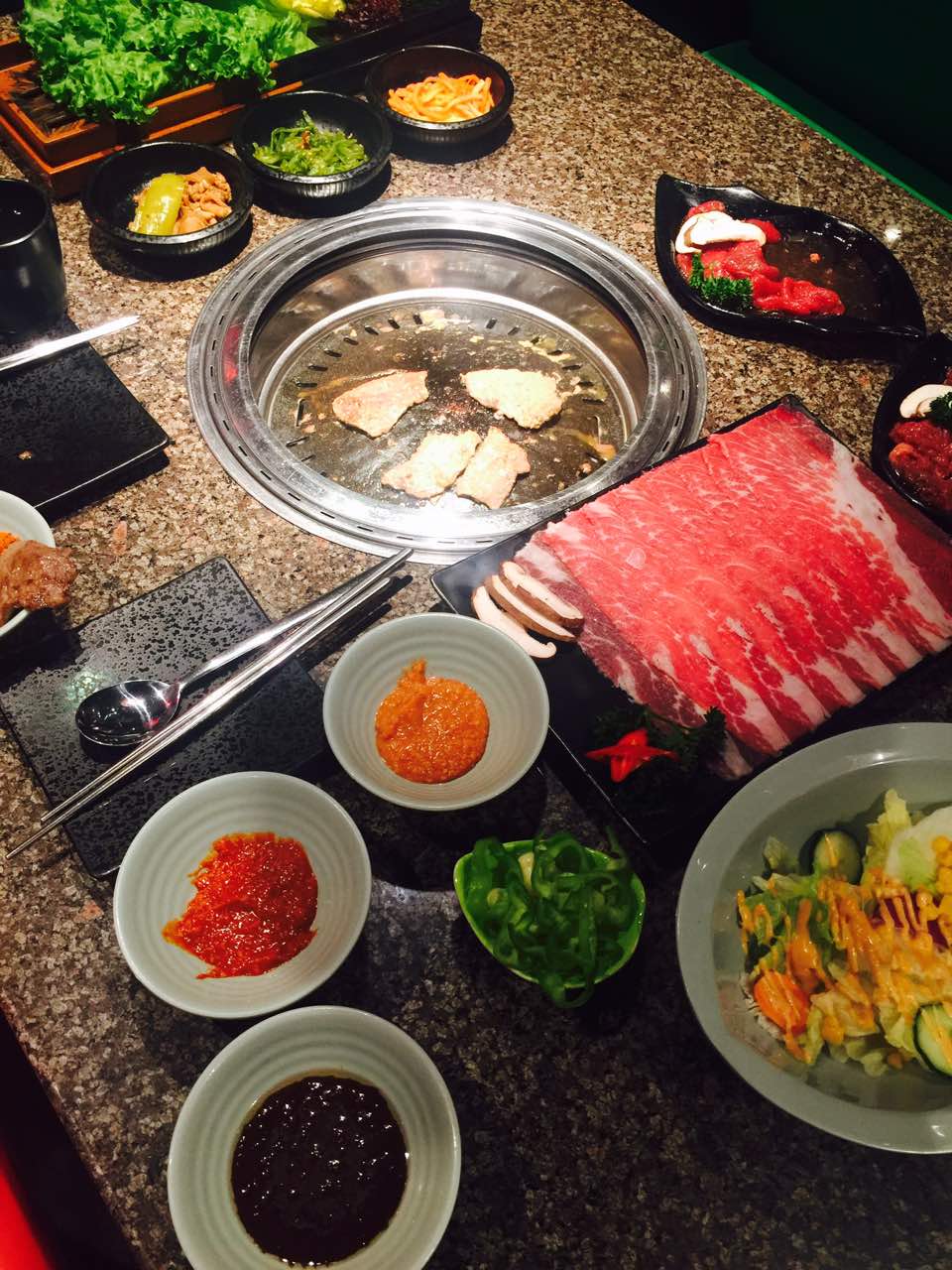肉很新鲜,上菜速度也很快,服务员姐姐特别周到,还有免费的水果,蘸料特别好吃,什么都好评