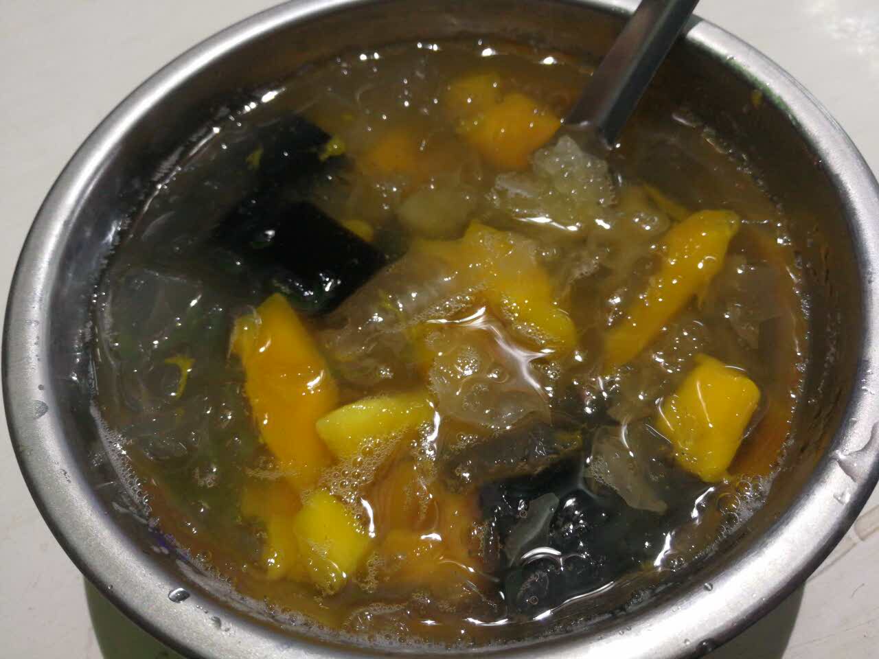 夜跑完来一碗四果汤,人生就完美了!顺便百度一下,终于明白了泉州满街都是的四果汤是啥? 石花膏采用生长于海底的天然植物石花草为原料,先以大锅熬制石花草,后用纱布过滤,冷却凝固后像果冻,食用时可加入蜜水或糖水。 石花膏四果汤是冰冷的糖水中加入石花膏和另外三种顾客自选的“果”。可以是切成小块的西瓜、菠萝、哈密瓜等水果,也可以是煮好的大红豆、香芋、豌豆黄、薏仁等五谷杂粮,还可以是仙草蜜、银耳、珍珠和莲子。