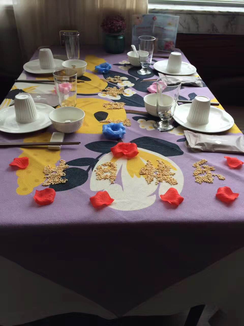 非常感谢服务员用心布置的小惊喜,还有生日蛋糕,菜肴忘记拍照片了,味道还不错哦 v