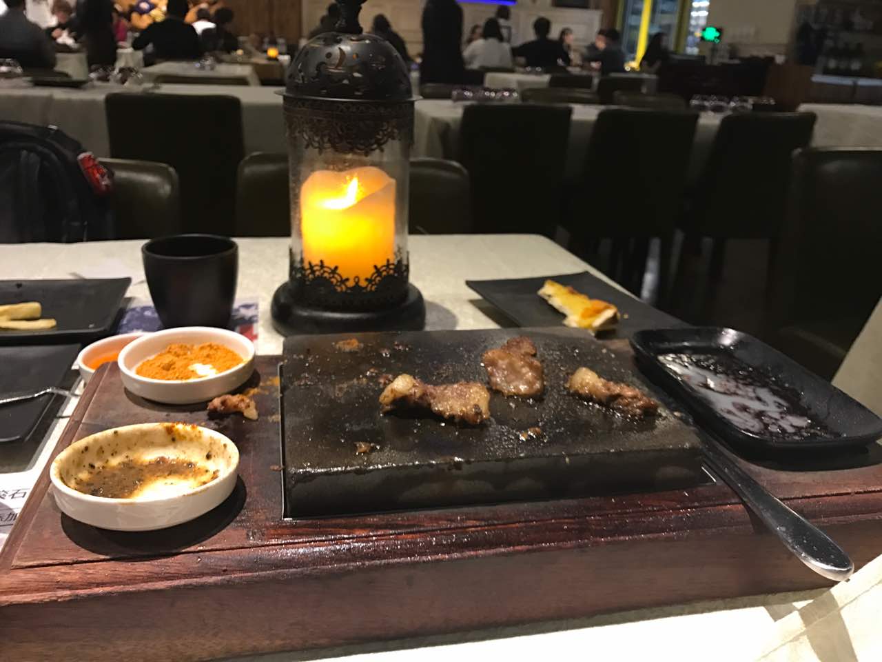 环境不错看着VS吃着牛排。石板牛排自己烤想吃几成熟就几成。不过披萨就不适合我了
