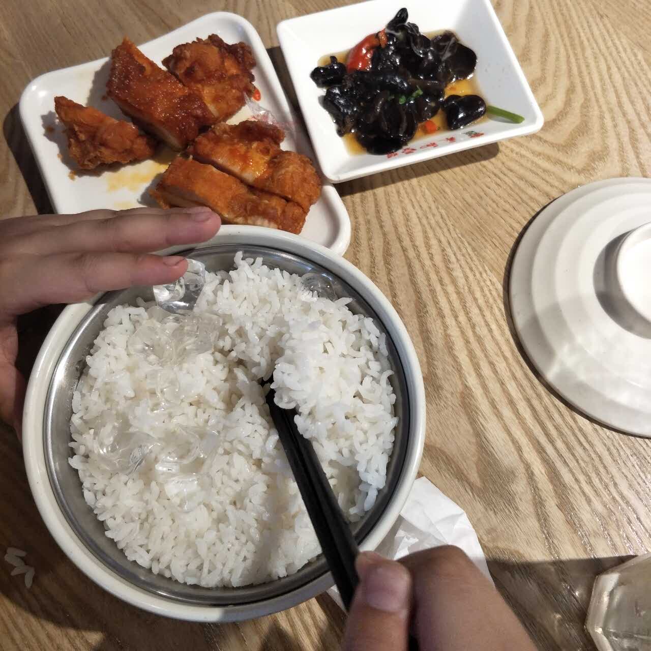 蛋炒饭还可以,看着有食欲,鸡排还没行吧!