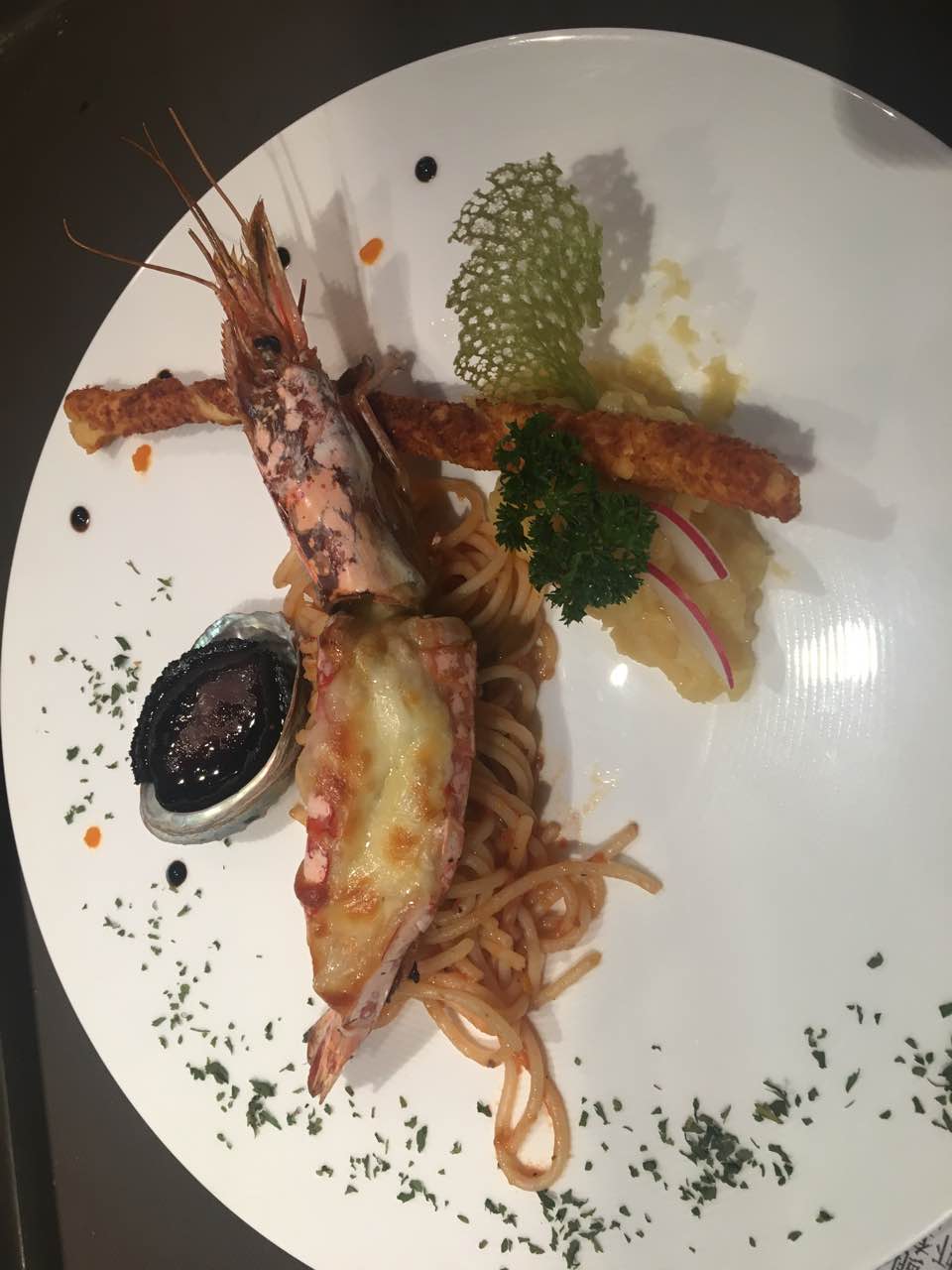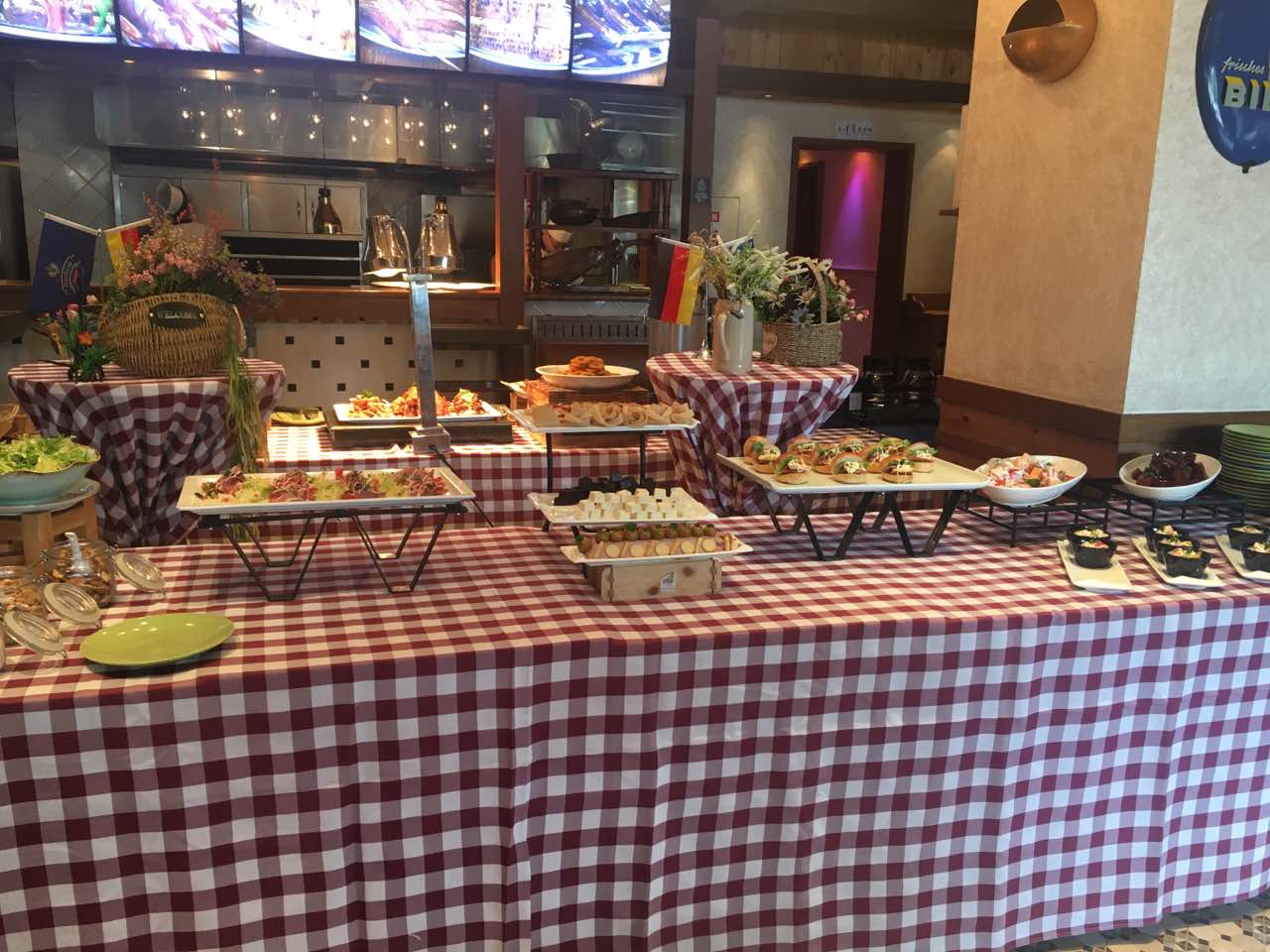 有三个个吃,还有德餐正宗的脆皮烤猪肘,很多美食,只有中午才行!早早来预定的!