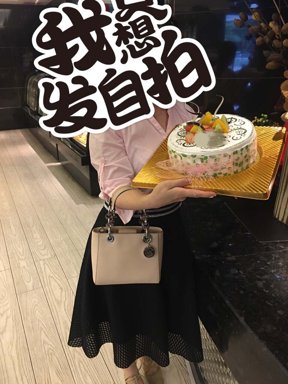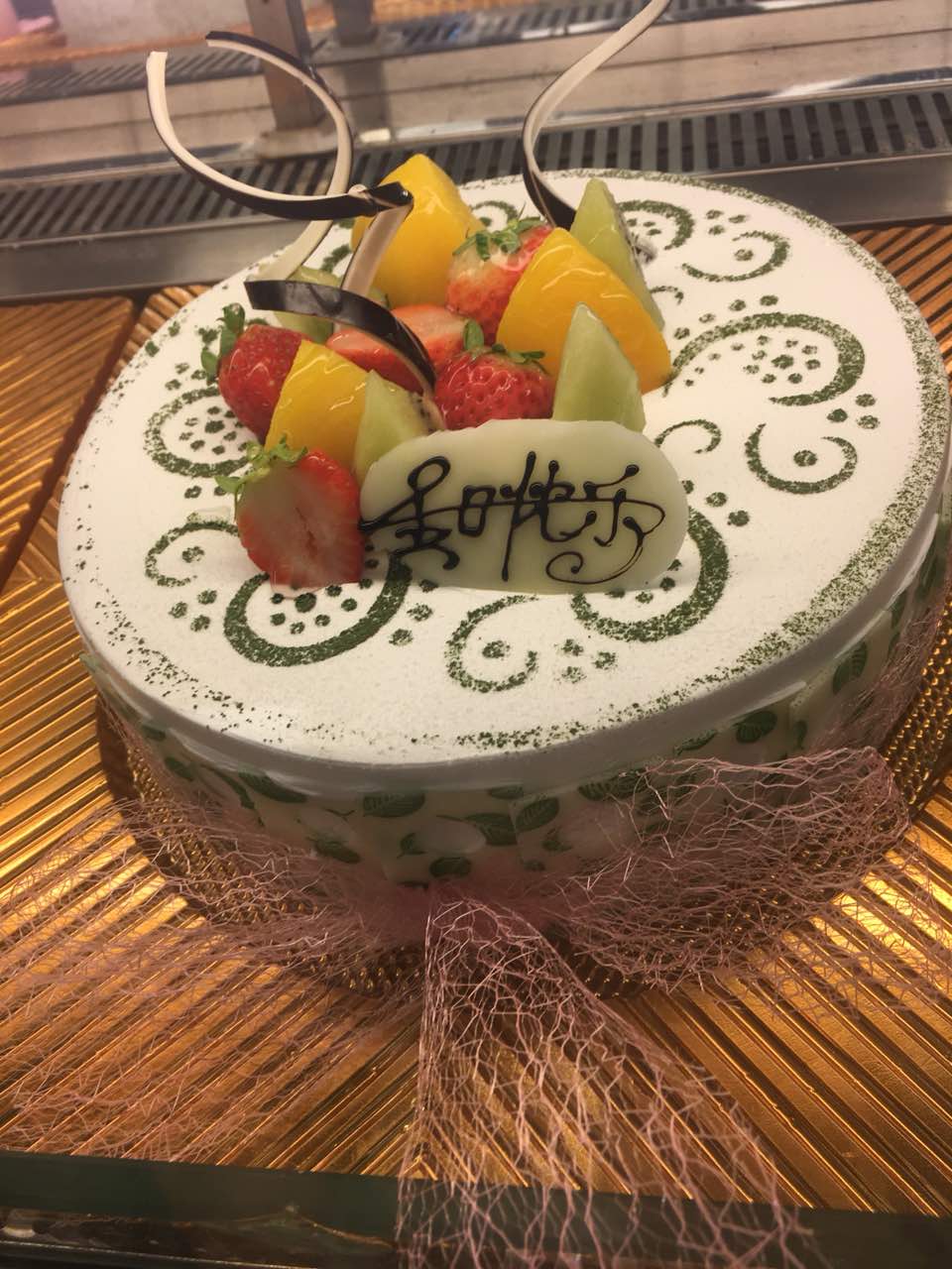 地方很好找,而且好方便,人不多,姐姐服务态度又好,不过蛋糕的款式不多,原本在册子选好的不是我手上这个,是我看到厨窗上,看到这个蛋糕很好看,服务员姐姐说,是师傅刚刚做出来的,册子上没有,好吧,我就要这个,于是换成这个,呵呵呵,