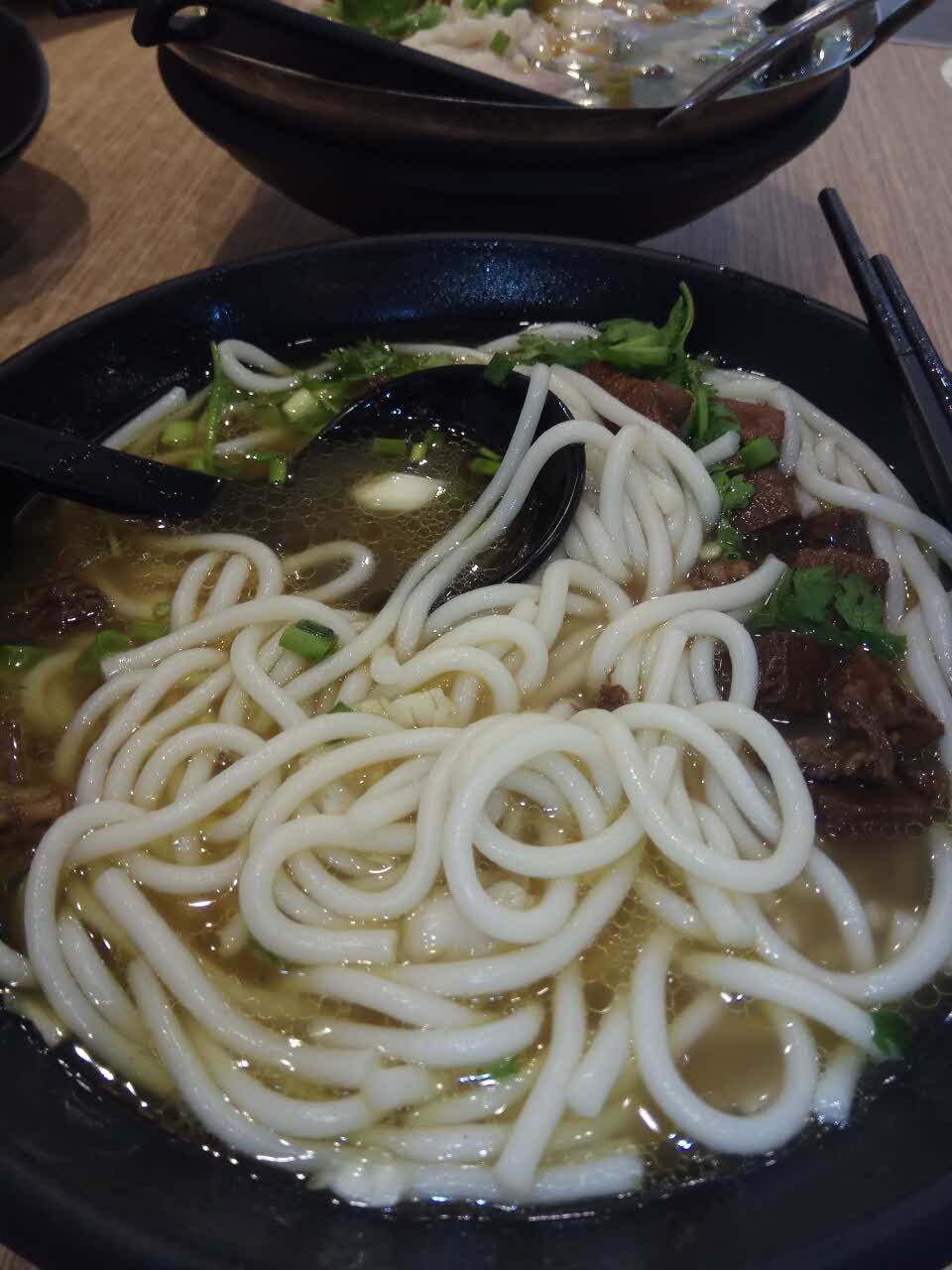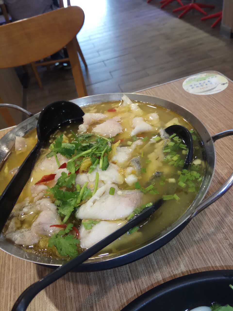 今天的酸菜鱼锅仔和炸鱼骨特别味道好,牛肉粉的汤略微淡了一点。