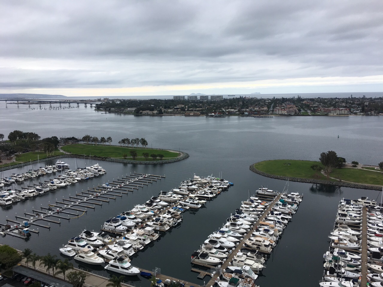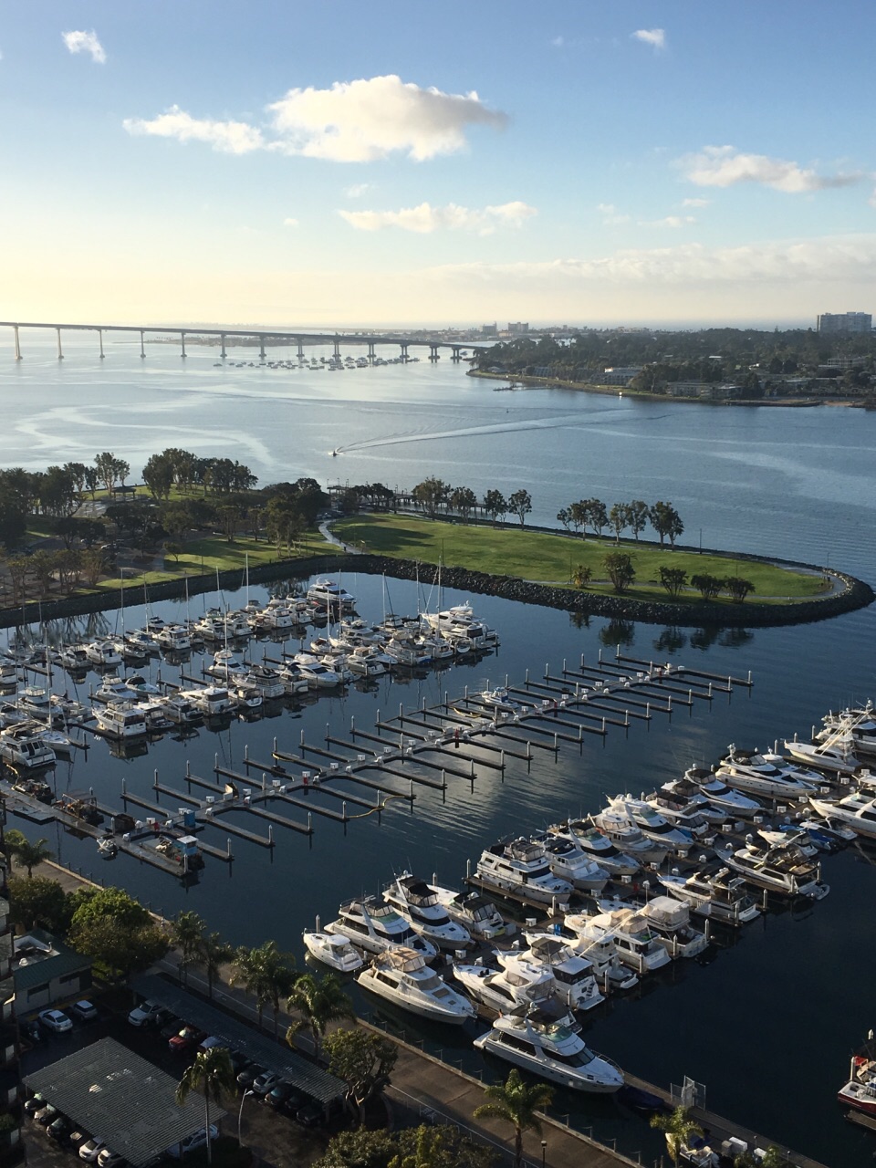 白天的岛看起来很美,周围的海湾停着很多的游艇。这个岛靠大桥连接着,我就住在对面的万豪,每天可以眺望