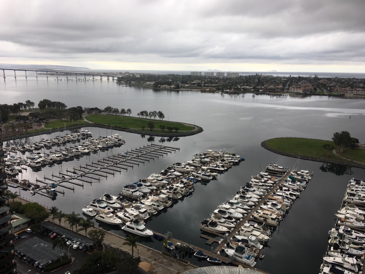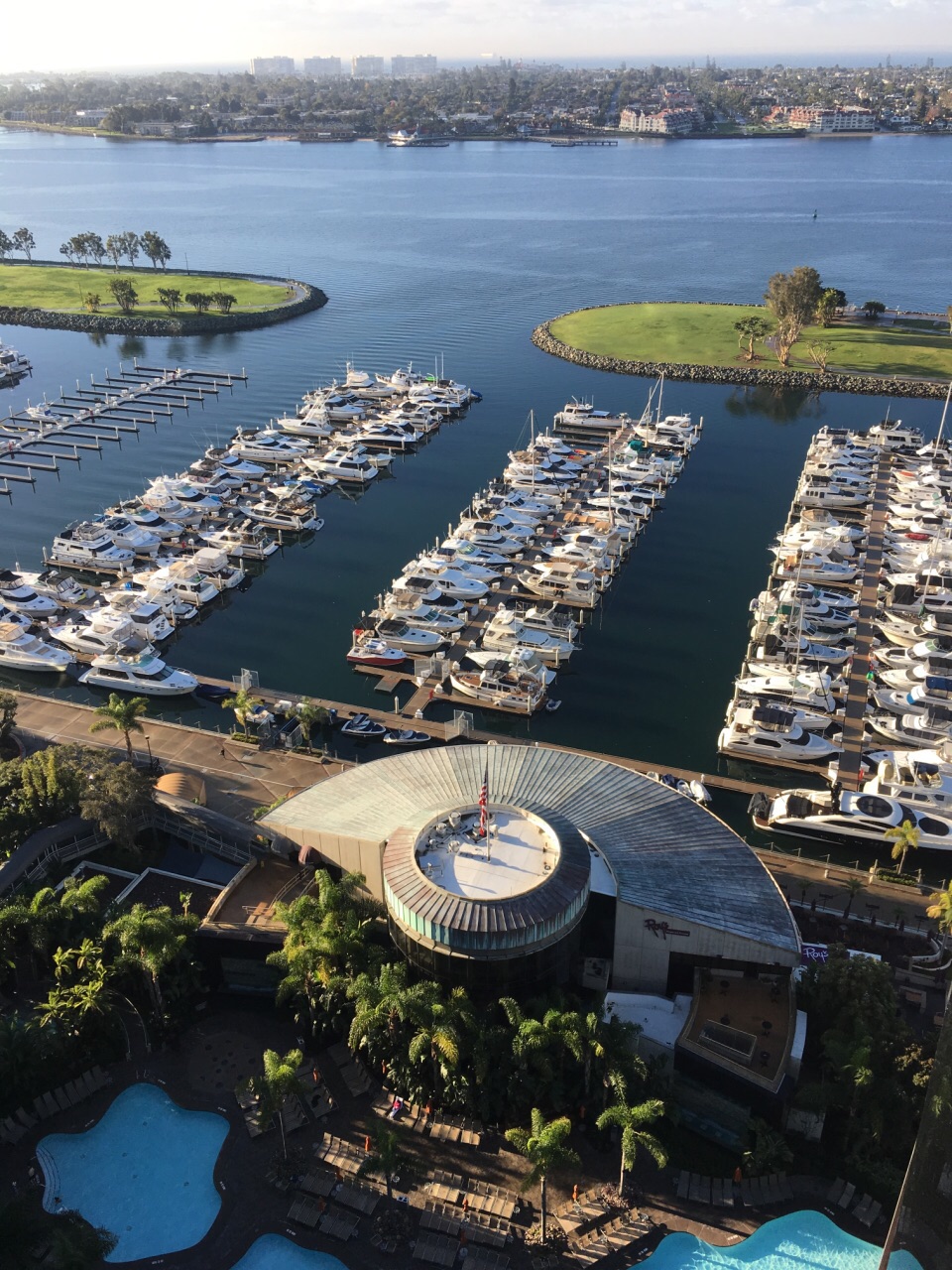 这个岛靠大桥连接着,我就住在对面的万豪,每天可以眺望。晚上驾车走了一下,都是富人区的住宅,比较冷清。驾车回来从南面的路绕的,一条孤路两面都是海,没有车,还是挺害怕的,只有笔直的两道车灯,不知道要开到何方的感觉。白天的岛看起来很美,周围的海湾停着很多的游艇。与对案的海滨遥遥相望