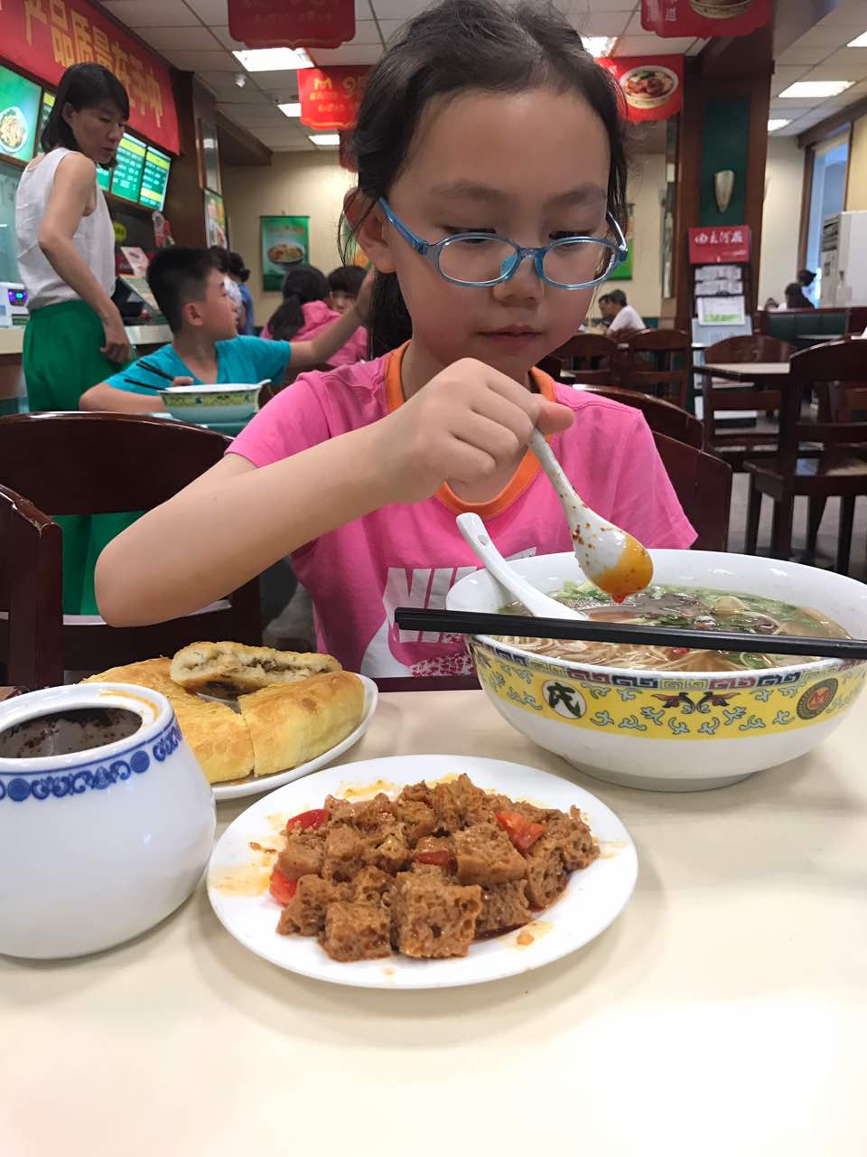 就在家门口,宝贝非常喜欢吃他家的面,可以说是百吃不厌。一碗面、一个饼、一个凉菜……宝贝的标配