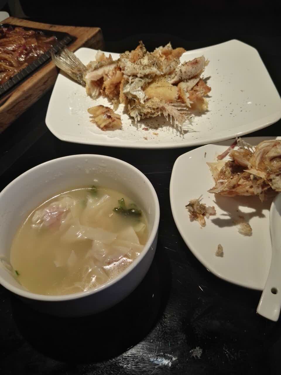 网友2017-06-19菜品还是很有味道的。环境不错,轻柔的音乐环境不错,轻柔的音乐。菜品还是很有味道的。我一人就餐,一份黑椒牛柳,一份柠檬味烤鲈鱼,一份上汤云吞面,一瓶青岛纯生,爽上天,撑个肚圆还打包了。