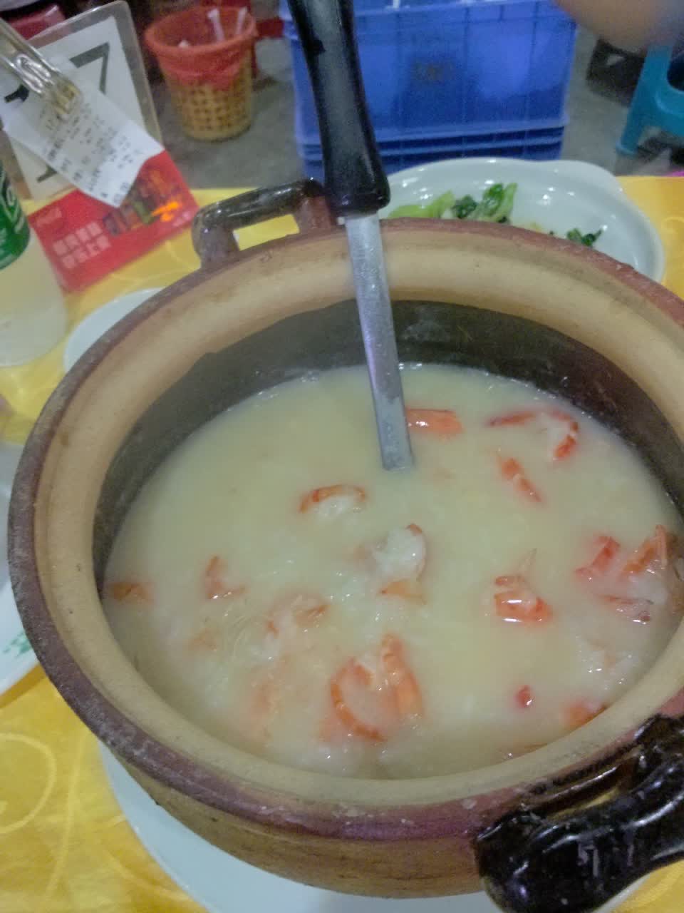 就是服务员太少了,需要自助到收银员那里点菜,自助取筷子( ー̀εー́ )。人气特别旺人气特别旺!!!他家的海鲜粥真的很不错,都是现熬的,海鲜也多,一点海腥味都没有!就是服务员太少了,需要自助到收银员那里点菜,自助取筷子( ー̀εー́ )