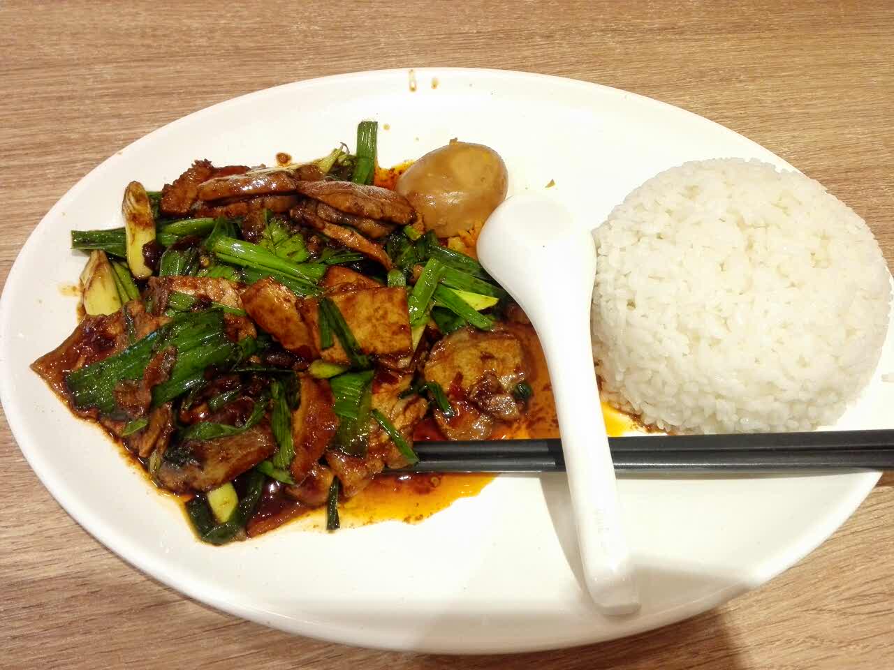 服务员说是边上唐巢公寓的老板开的食堂,真是服务人民呀!整体装修还不错,皮沙发,菜还挺好吃,一个回锅肉饭18元。