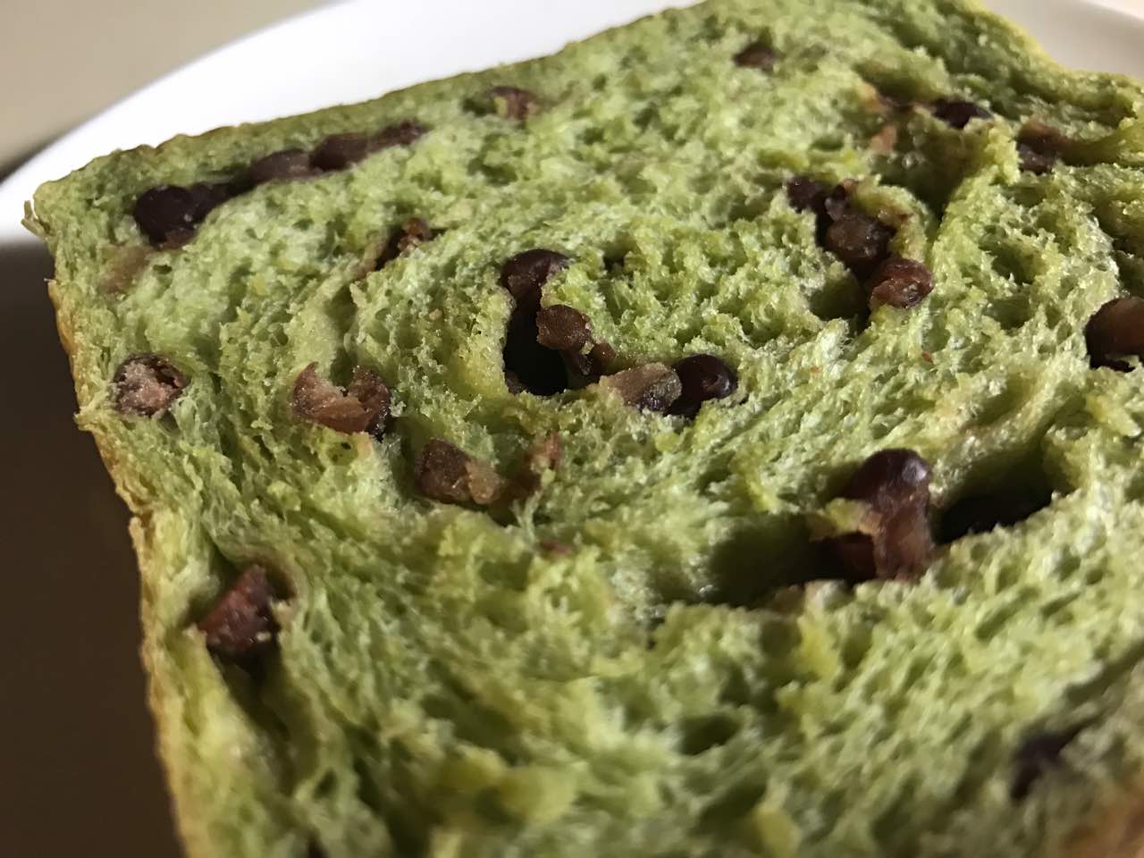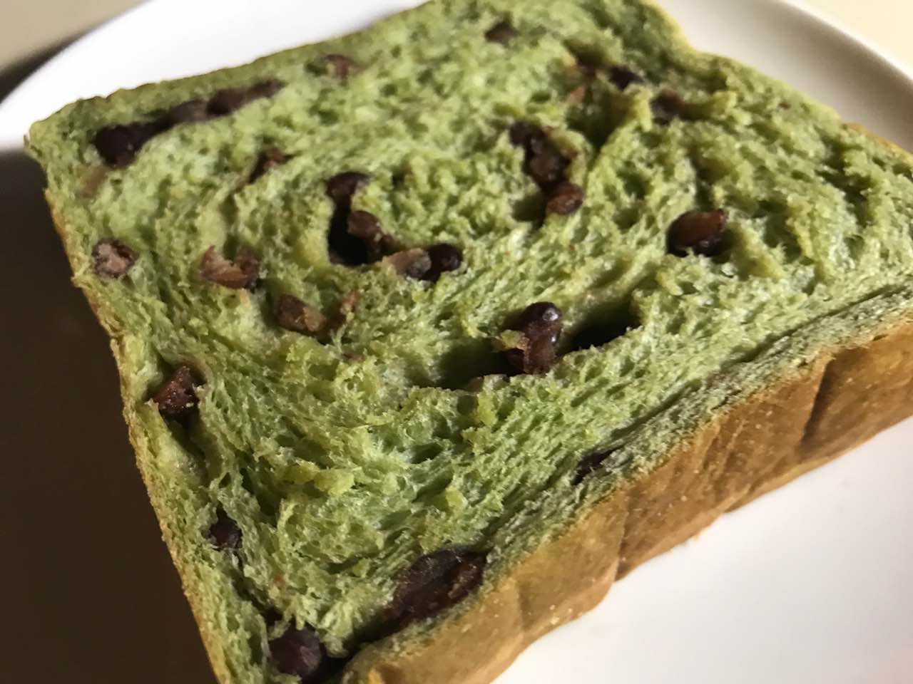 甜度适中,在高水份和良好的发酵下,吐司弹性十足,抹茶色泽惹人食欲,红豆好多好多,口感也相当好