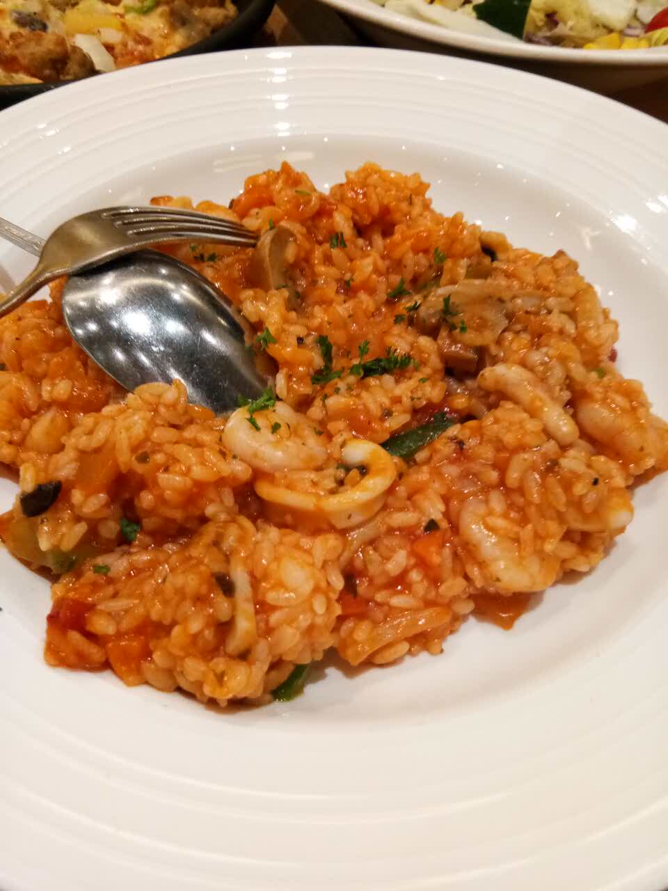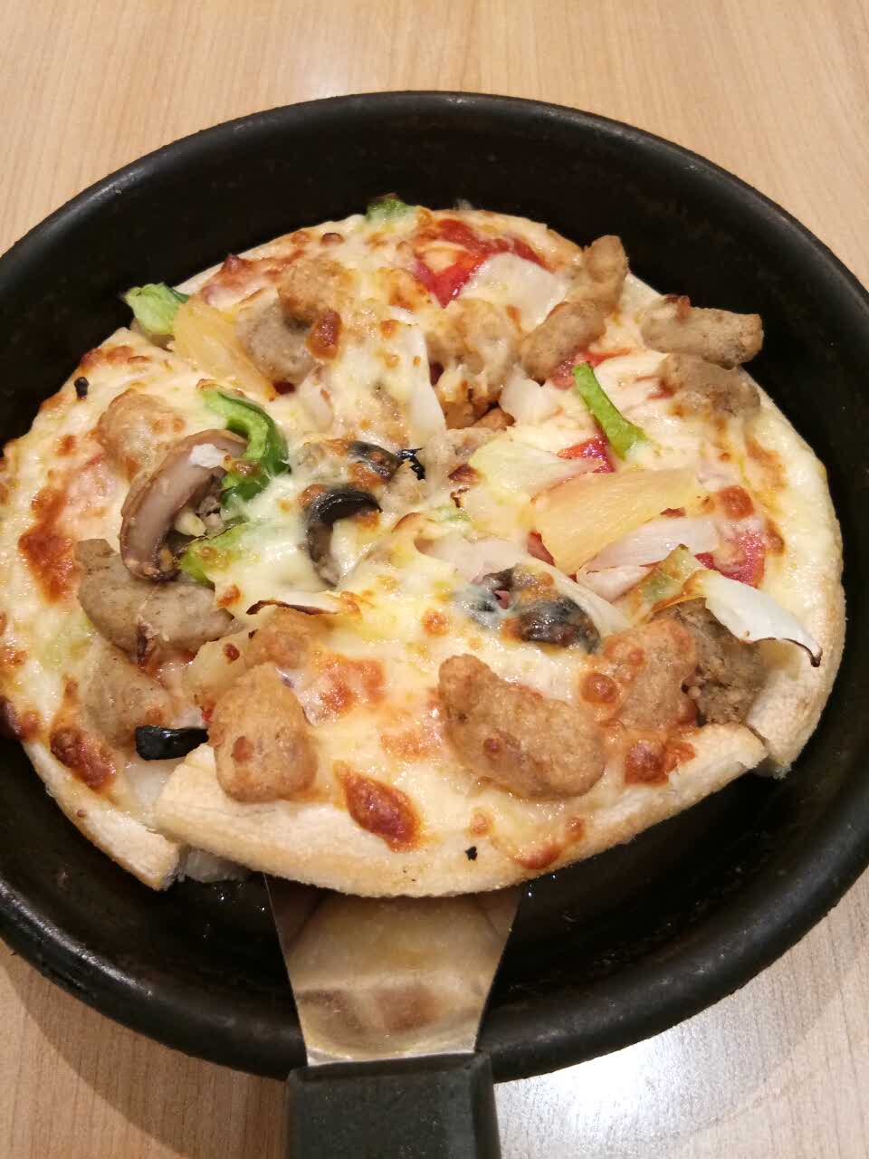 依旧喜欢必胜客的超级至尊披萨,海鲜饭也不错,番茄味道挺浓的,点了杯鲜果茶,感觉还不错!