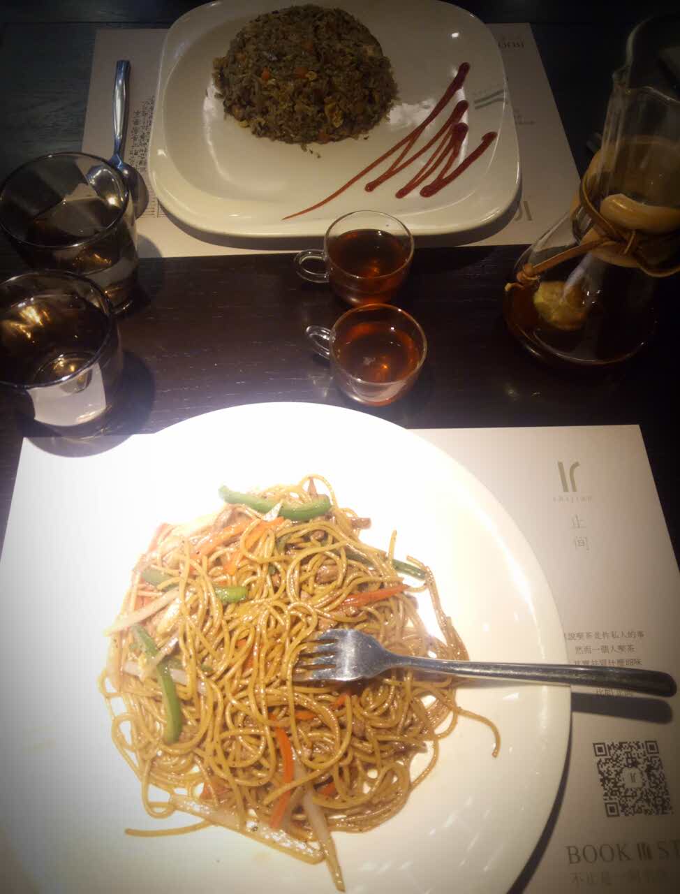 晚餐在店里解决了,黑椒牛柳面跟炒饭都挺不错的。止间书店,拔草过来的。点了一壶柠檬冰咖,也挺不错止间书店,拔草过来的。服务小妹小哥都挺热情,随时添柠檬水。晚餐在店里解决了,黑椒牛柳面跟炒饭都挺不错的。点了一壶柠檬冰咖,也挺不错。会再去的~