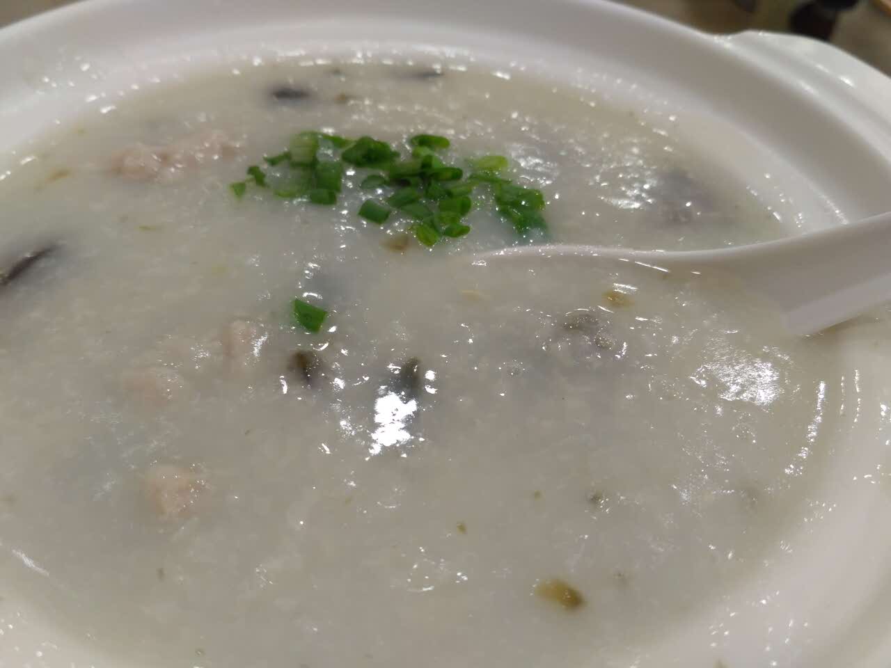 香菇肉片肠+皮蛋瘦肉粥,绝配啊。肠粉满满的都是香菇的香气,粥也熬得很香,份量很足,香软可口,赞