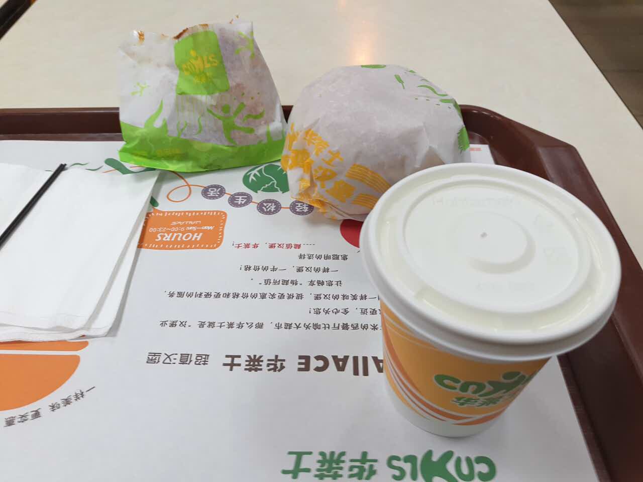 在华莱士西亚斯店!初八就能吃上汉堡,真不错,环境暖和,服务态度好,关键是很好吃。