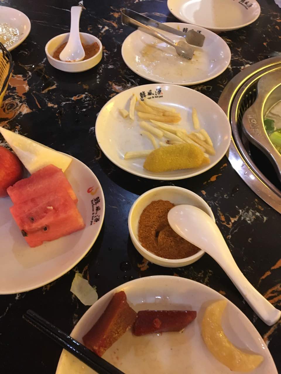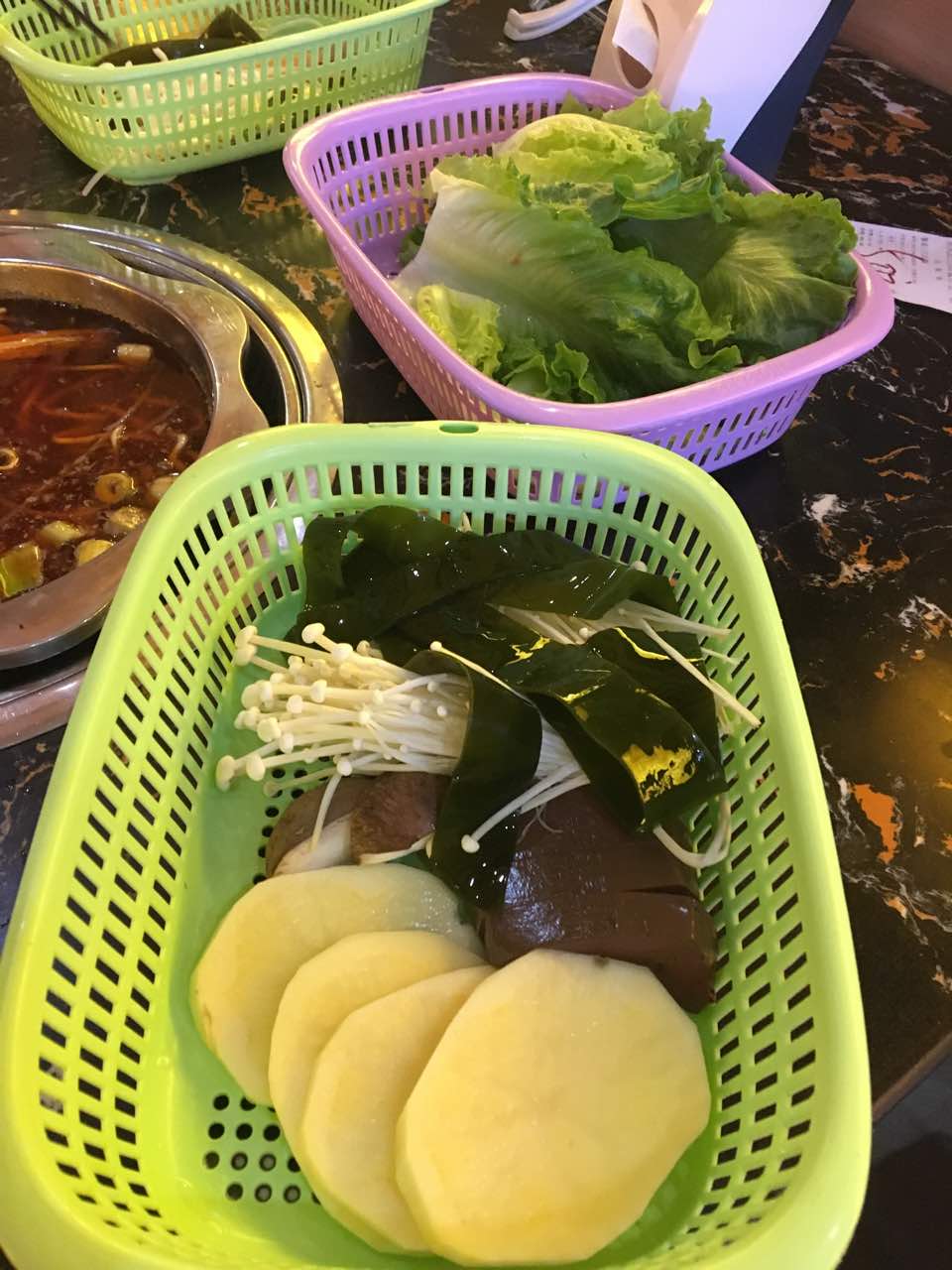 用青菜包培根更好吃哦,西瓜吃起来非常不错,鸭血和土豆在火锅里特别好吃