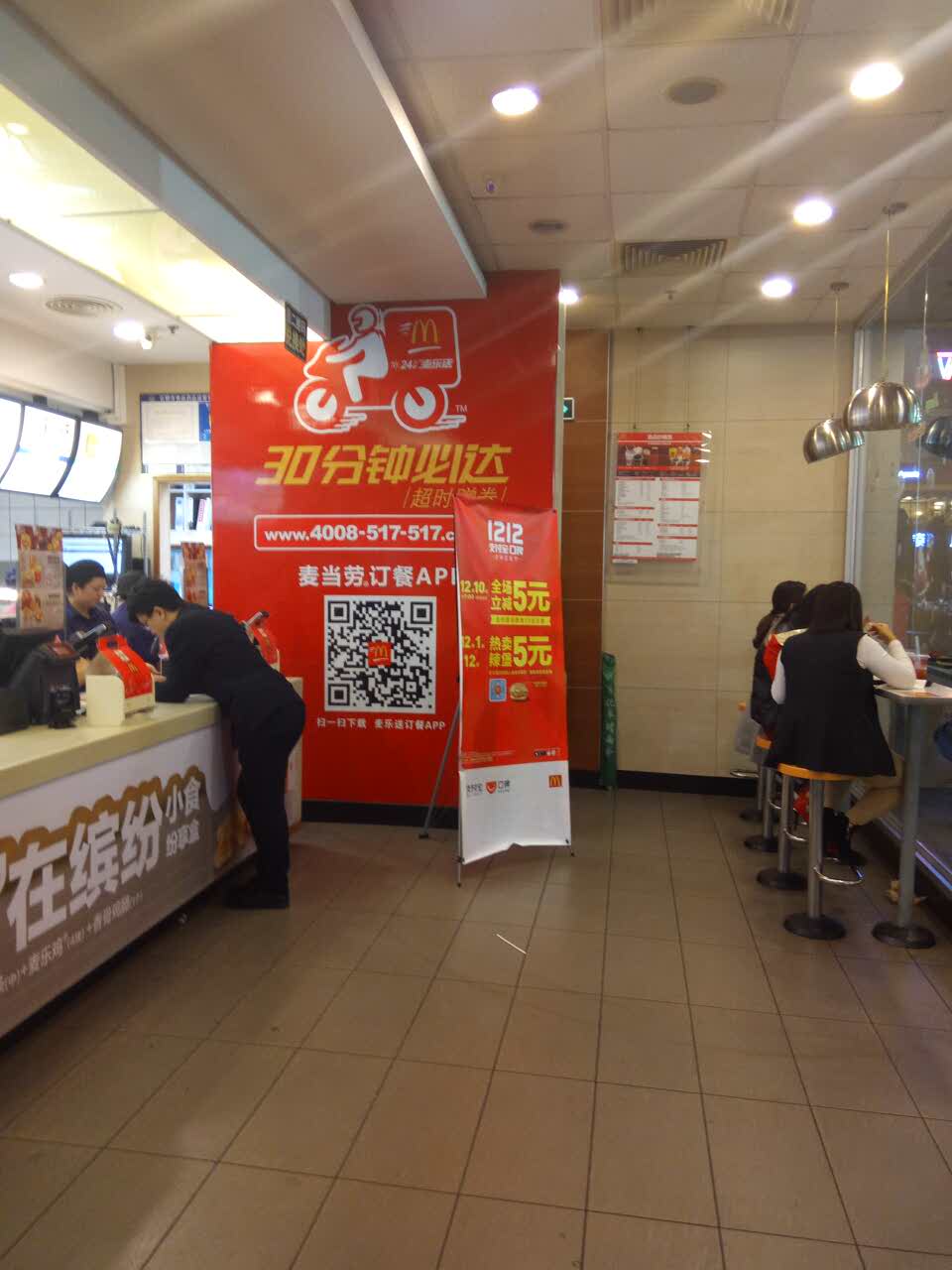 网友2016-12-11麦辣鸡腿堡是麦当劳的经典产品,酥酥的辣味好过瘾,5元的单价更实惠麦当劳门店的双12氛围很浓,大幅易拉宝宣传活动。麦辣鸡腿堡是麦当劳的经典产品,酥酥的辣味好过瘾,5元的单价更实惠。