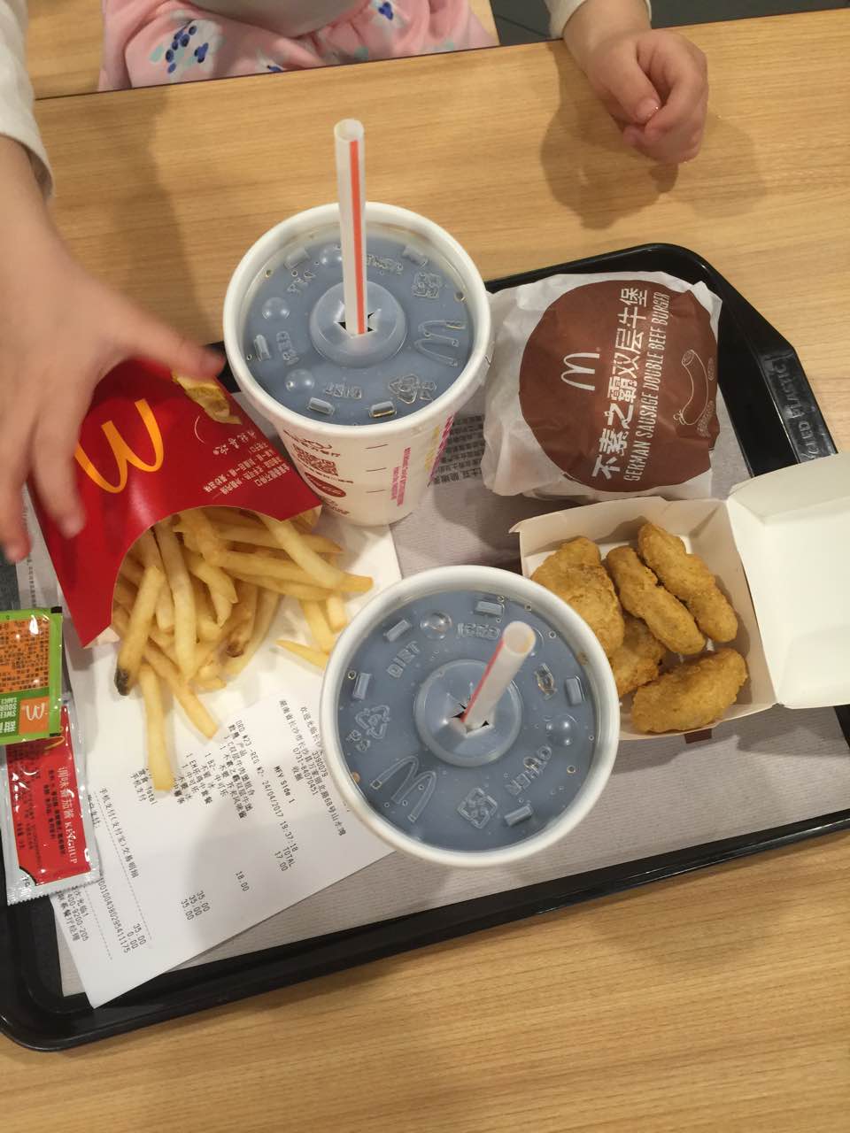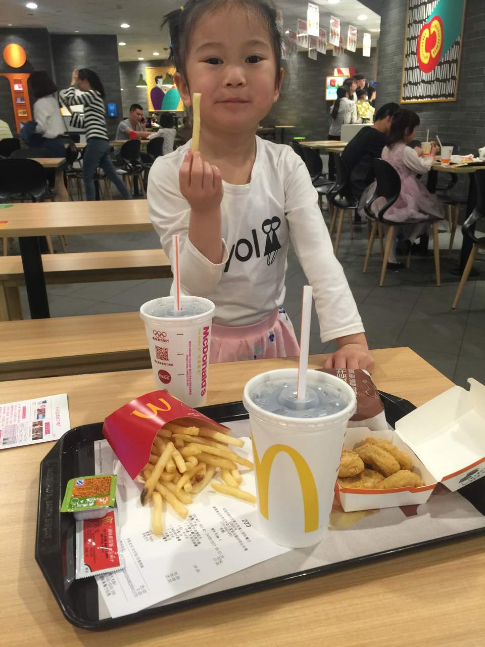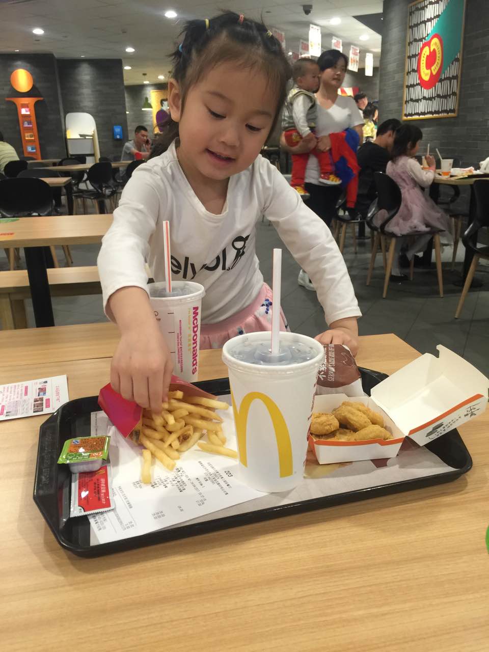 这孩子刚吃完饭出来,又要吃麦当劳,小吃货一个!