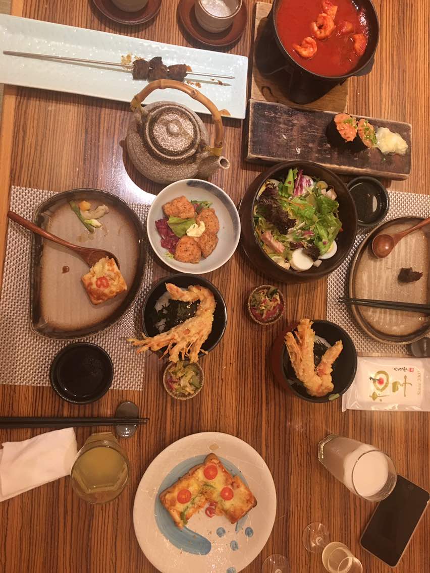 两个人完全吃不完,三文鱼刺生很好吃哦,披萨也不错,只不过我真的吃饱了。甜品也很好,值得再去哦!