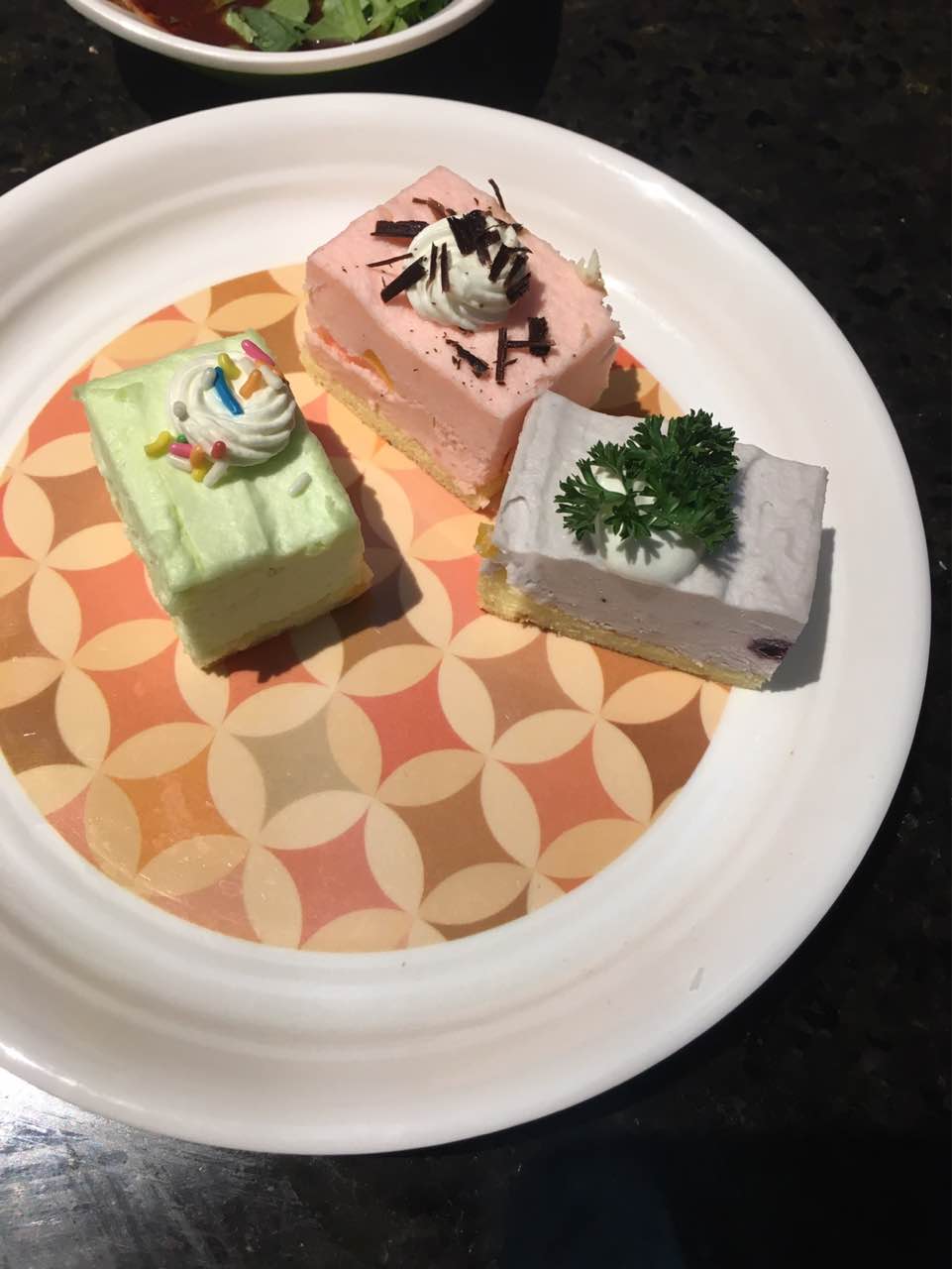 ...什么海鲜,蟹脚一点也不紧实,生蚝排队领而且也不新鲜……但是甜点做的还是蛮精致的,小朋友都很喜欢说实话牛排我感觉不像是牛肉,不知道是不是全熟的原因一点嚼劲都没有。说是海鲜自助其实也没什么海鲜,蟹脚一点也不紧实,生蚝排队领而且也不新鲜……但是甜点做的还是蛮精致的,小朋友都很喜欢!