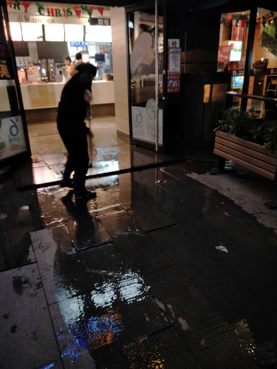 店里翻水,臭死了。不过我还是进店买了!店里的伙计很勤快,不停的在扫着。给他一个赞。