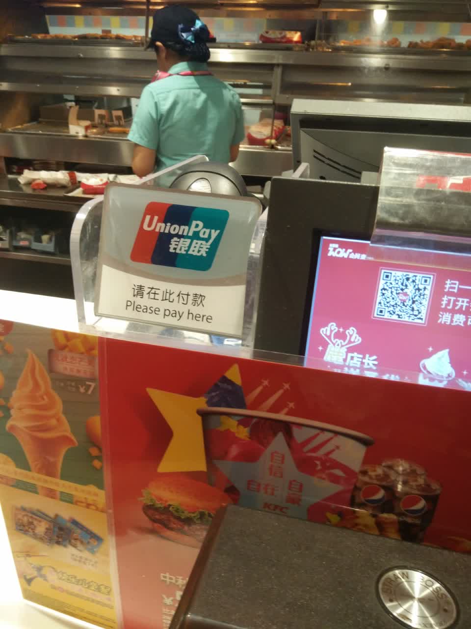 ①可以手机云闪付,很赞✔②东西还不错,上次买个甜筒,造型可丑了✔③购物小票还是我主动要求才给我的,差评!✘④环境不错~