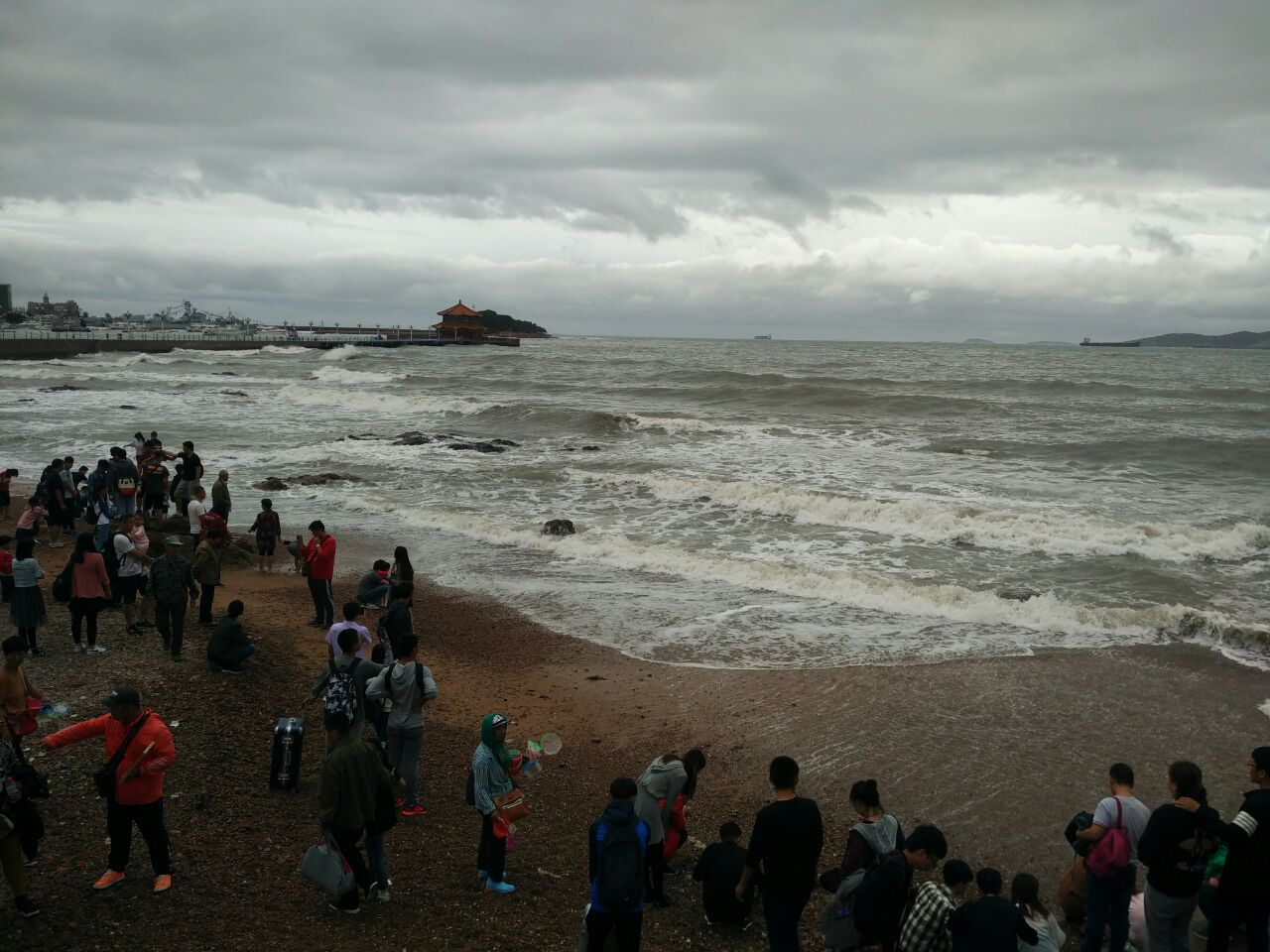 ...走到了,国庆节人很多,堤岸上都是人,昨天下了大雨,今天风大浪大,栈桥封掉了没能上去走走,可惜了今天去了,因为住在火车站附近,所以化了10多分钟就走到了,国庆节人很多,堤岸上都是人,昨天下了大雨,今天风大浪大,栈桥封掉了没能上去走走,可惜了。