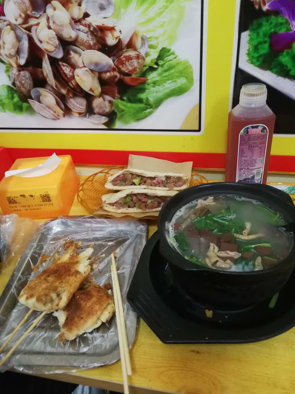 店面不大,但人非常多,驴肉火烧很好吃,鸭血粉丝汤有点咸