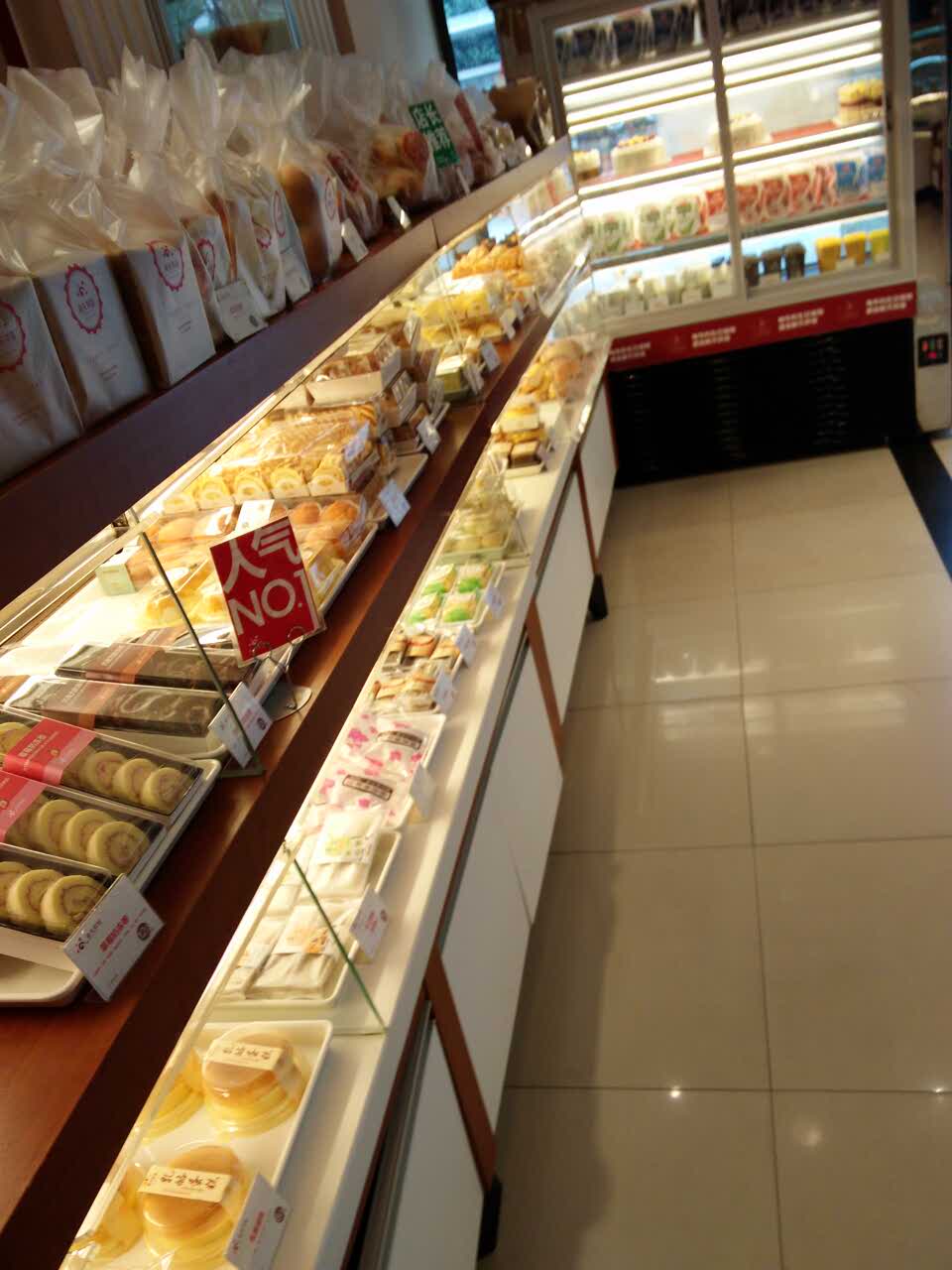 。。。店面不大,但很干净 服务态度也很好呢。。。。面包蛋糕都很新鲜。。。满意 下次再来